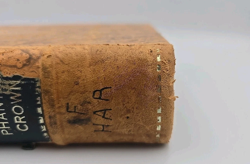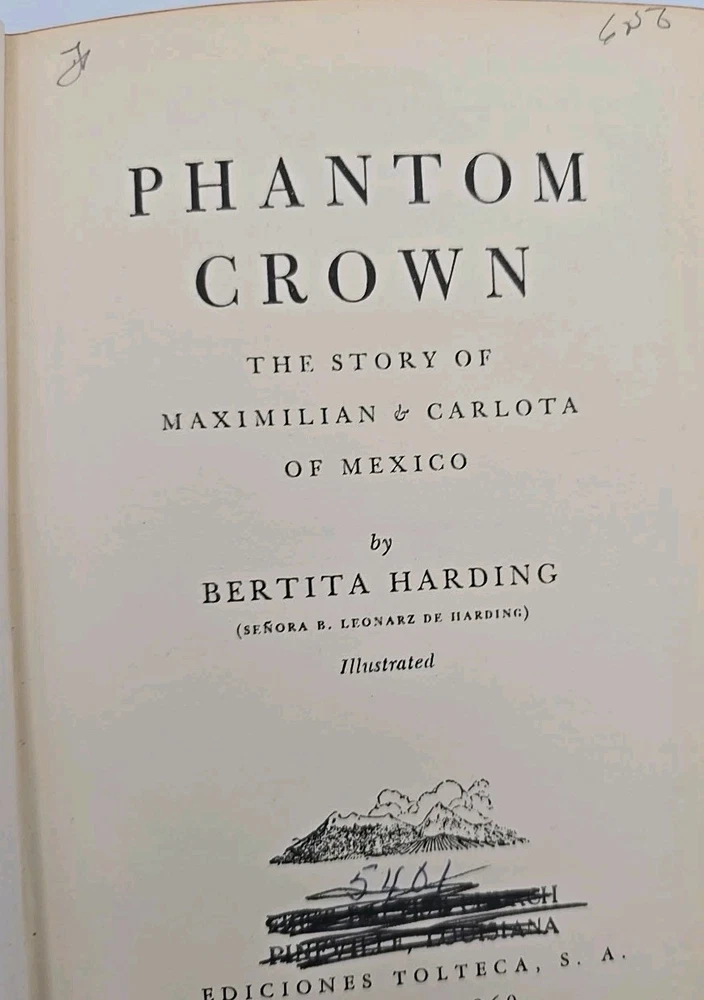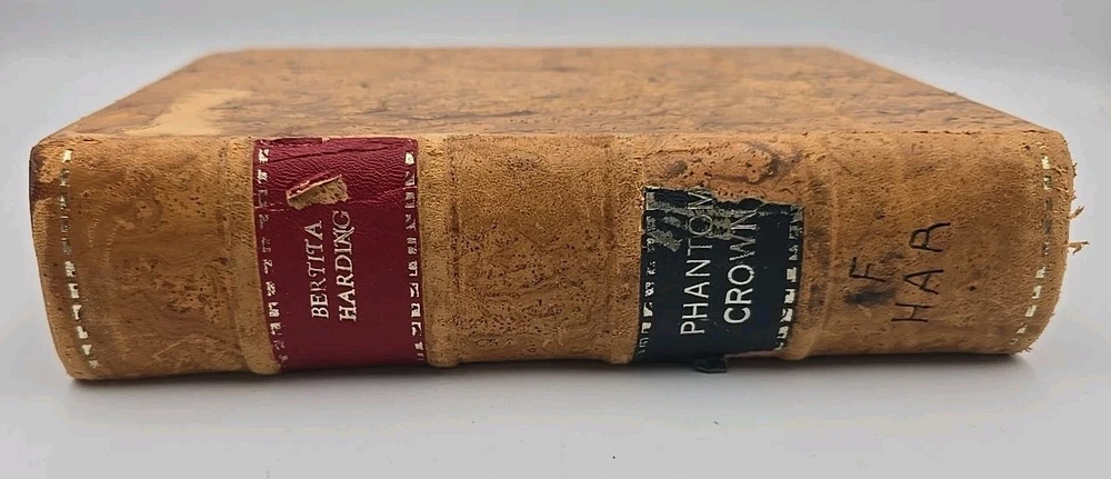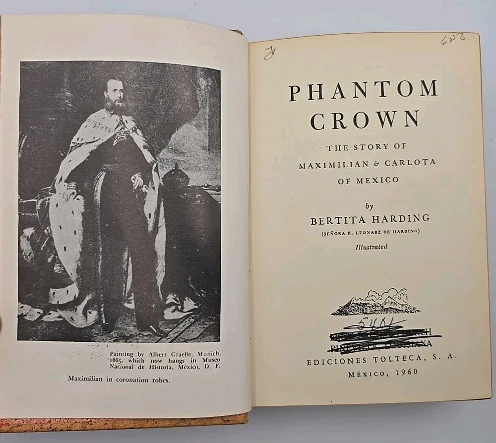2ND PRINTING of 'Phantom Crown' by Bertita Harding, bound in leather Hardback by Ediciones Tolteca. Title page has writing on it (as shown) and cover has wear and initials on spine. **REVIEW IMAGES FOR DETAILS REGARDING CONDITION; BOOK SOLD AS IS**