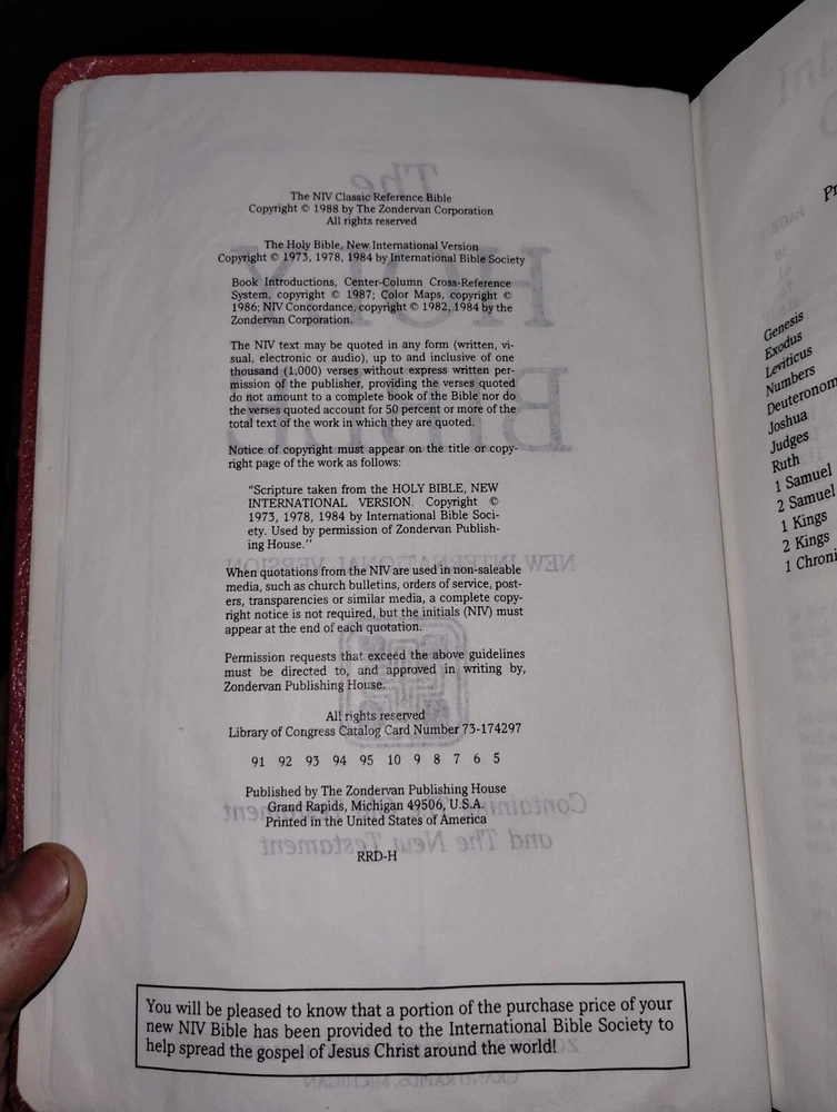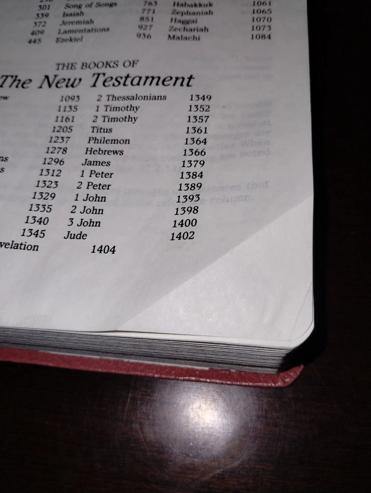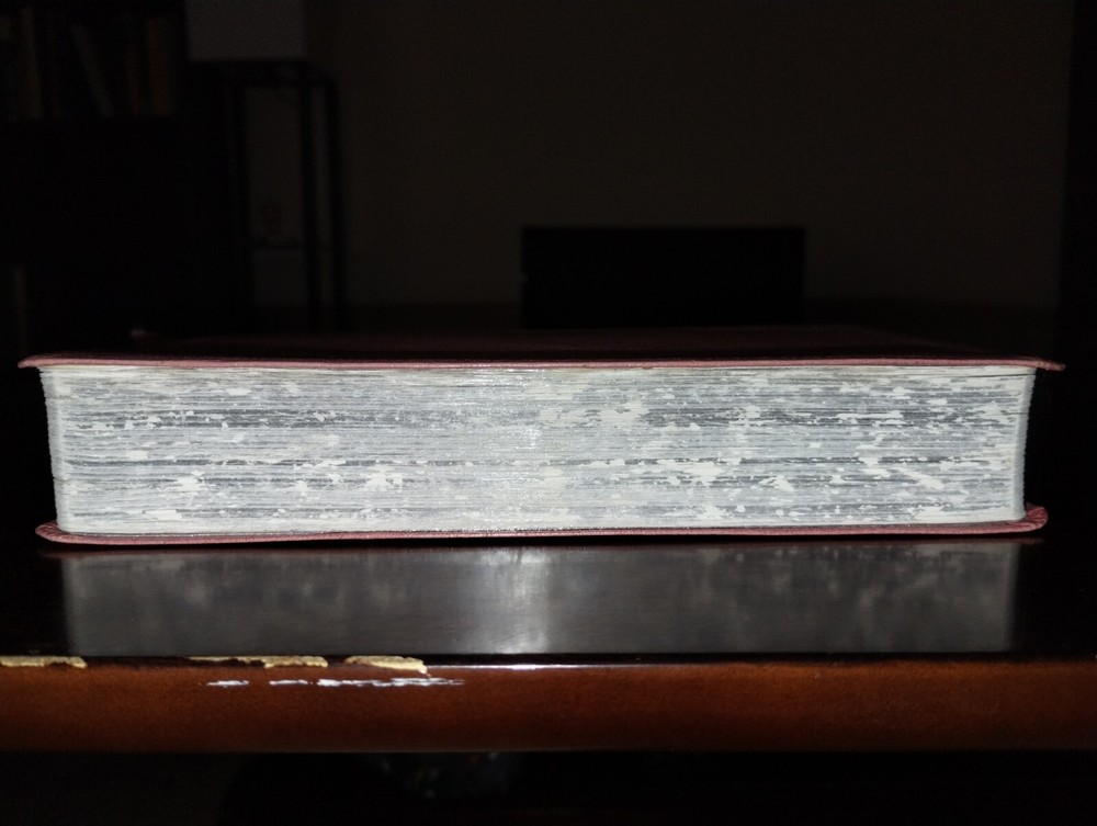 Zondervan, 1988. Condition: Good. Rosy bonded leather. Writing on the dedication page, birthe, deaths, marriage, etc. No other apparent markings. Some pages folded on the bottom corner(see photos) else a Good copy with light signs of wear. Notice: As of 7/7/25 we will be reducing the descriptive information for common and less valuable items. While we always aim to provide accurate and concise information about the book you are buying, the rate we are able to list vs the backlog of stock we have to offer has grown too great. It no longer makes sense for us to spend the same amount of time on a $10 as it does a $100 or even $1,000 book. As such, descriptions will be shortened to the bare bones on common items. This will be formatted as: Publisher, City of Publication, date of copyright. Number of pages, size. Condition: Book Condition/Dust jacket condition if applicable. Any major pertinent flaws I. E. a tear to the dust jacket, soiling, etc. Example: Garden City, New York, 1938. [IX], 8vo. Condition: G/G. Boards bowed, tear to the front joint of the jacket. We will always mention whether a book has writing within it beyond common marks such as a former price, stock number, owner name or initials, etc., OR major condition issues. Condition will be between Fine-Poor in line with The Antiquarian Booksellers Association of America(ABAA). Below you will find a helpful guide for determining the condition of a given book. Fine , ( abbreviated F ) Fine is very close to As New in condition, except that the book may have been been previously opened or carefully read. Very Good ( abbreviated VG ) This is a book that shows signs of prevoius ownership and use, but it?s still very nice copy. If there are any flaws or defects such as the former owner?s name ( FON ) or the former owner?s initials ( FOI ) , they need to be specifically noted. Good ( abbreviated G ) Possibly the most confusing book condition for the layman. A good condtion book will show significant wear including the potential for tears in the dust jacket, wear on the edges of the wraps or boards as well as the textblock. Specific issues should still be noted. A good condition book should still have all pages and a fully intact cover. Fair is a book with noticable wear. Some non-essential pages such as the Front Free End Paper(FFEP) or Rear Free End Paper (RFEP) may possilby be missing but the entire text and all plates should be still present. A Fair condition book isn?t typically considered collectible condition (except in cases where scarcity is such a factor that a better copy isn?t commonly avaialble). Fair condition books are still servicable reading copies. Poor A book with significant wear and faults. A poor condition book is still a reading copy with the full text still readable. Any missing pages must be specifically noted. Ex Library : In traditional book description guidelines, this is a book condition unto itself. The statement that the book was removed from library circulation historically indicated that the book had no collectible value due to certain standard practices of libraries such as ink stamps asserting ownership and uniquely durable tape binding the dust jacket to the rest of the book. That old standard has relaxed some over the years. An additional condition report may be requested by the buyer BEFORE purchase.