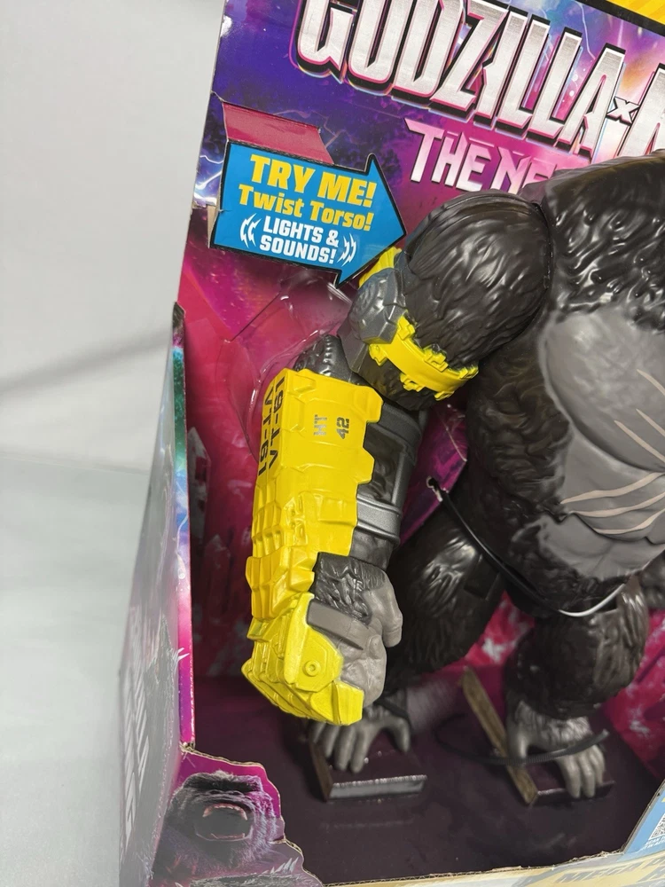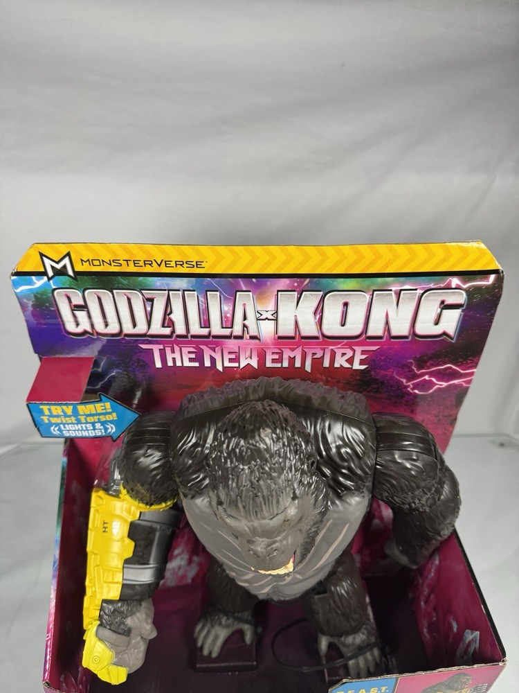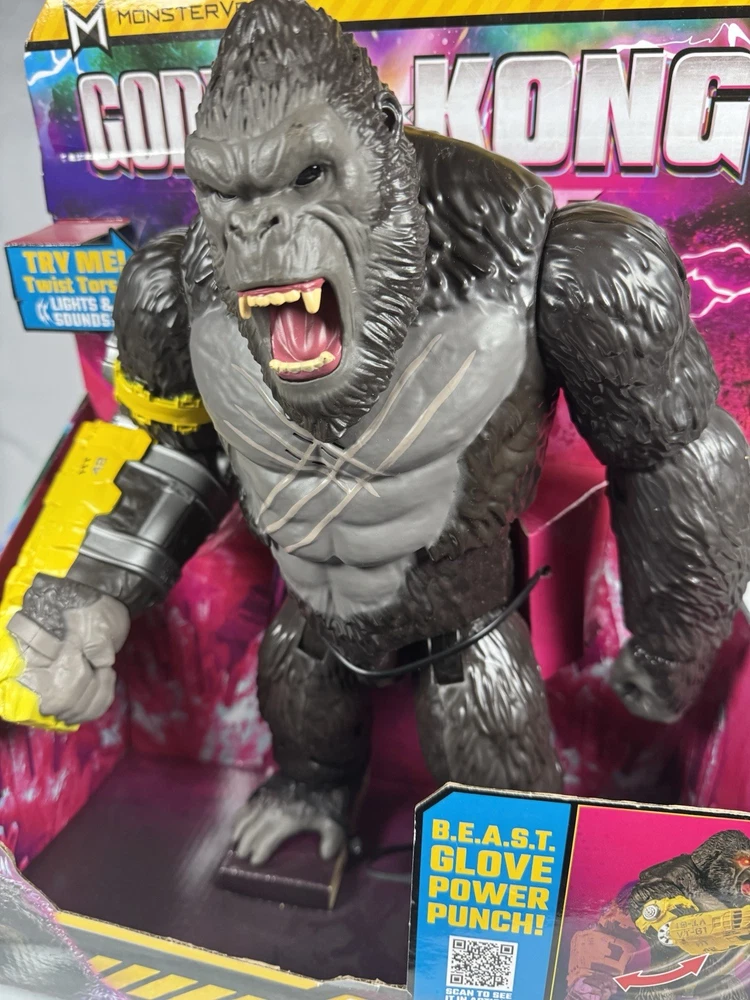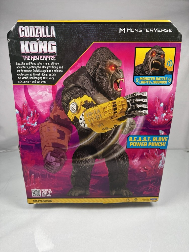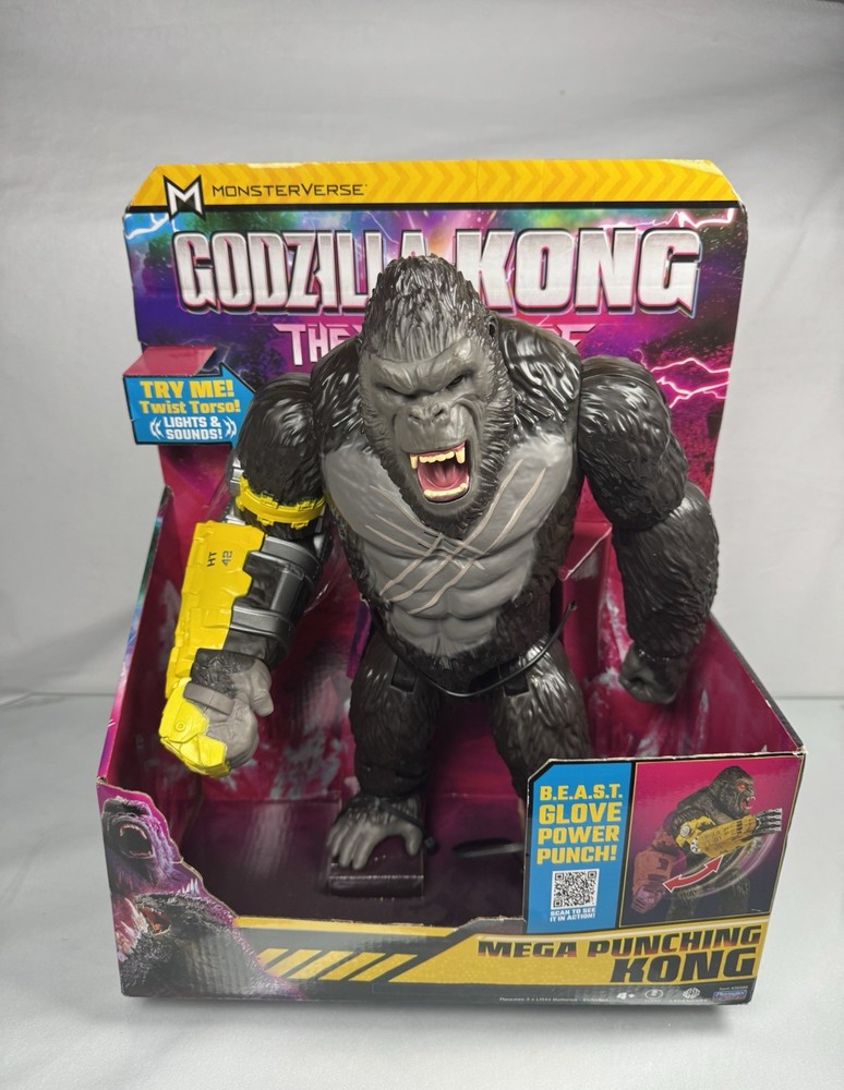 Playmates Toys Godzilla x Kong: The New Empire 13" Mega Punching Kong x3 LR44 batteries included, this item is tested and works with twist torso, red light up eyes, button with sound and twist torso with sound. Kong has slight cosmetic damage as pictured. Return shipping and feedback accepted thanks!