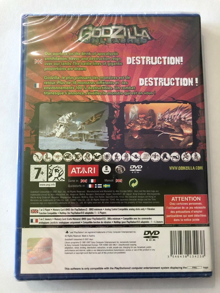 Please take a good look at the photo(s). Photos are taken by me, not taken from the internet. If a product is described as "Used" if it will be evaluated by you. no dispute will be possible, I am open to multiple questions. A response will be given within the day, please feel free. GODZILLA : UNLEASHED Language : French Official Product / Official Product Console : PS2 Version : PAL Condition : New When shipping the product will be under protection, Paper bubble. Other products are available in the shop, combine your purchases. Shipping FREE will be followed up, for optimal product tracing.