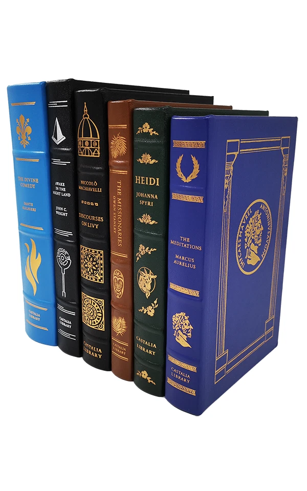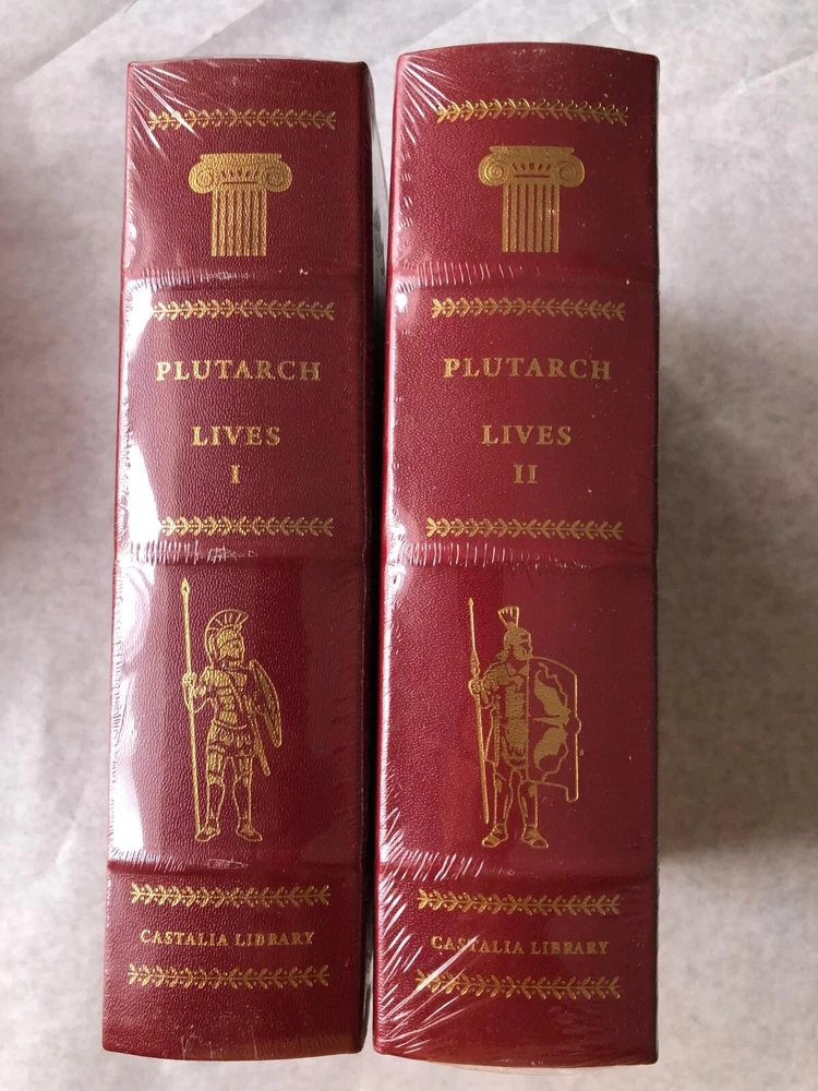 First edition Castalia Library, premier partner of the Dorking Wanderers F.C. Lives Vol. I and II by Plutarch are the fifth and sixth books in the Castalia Library series. Limited edition of 750. This deluxe edition of Lives Vol. I and II is printed on Finch Opaque Vanilla Vellum 70-pound archival paper by Pulp Printhouse. It is Smythe-sewn and bound in top-grain cowhide from Cortina Leathers. Genuine Italian cowhide binding 22k gold spine Gilded front cover Gilded page edges Archival-quality paper Original interior layout Arrangement by Greek chronological order Translation and Introduction by Bernadotte Perrin Illustrations by Jost Amman from the 1580 Latin edition A vital classic of Greek and Roman history Limited edition of 750 Shipped and sold from the United States. We ship worldwide.
