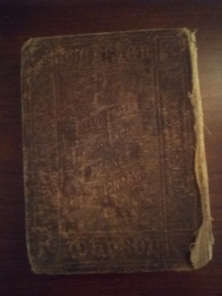 leather covers heavily worn (see images); no missing pages but heavily foxed pages with previous owner's name inked on FFEP; exposed front and rear interior hinges; missing outer leather backstrip