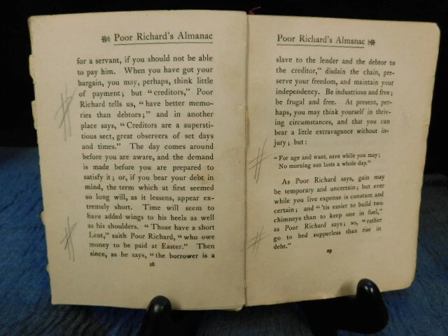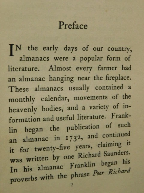 Up for your consideration is an antique Book Poor Richard's Almanac- in Franklin-H. M. Caldwell & Co, 1900, wear and tear are in pretty good condition for its age. There are pencil marks of tic tac toe marks up to page 35 Please view all photo’s Buying as is, no returns Please check out my other listings and enjoy additional savings with combined shipping. I do not ship out of the USA, Alaska or Hawaii due to very high shipping cost, very sorry