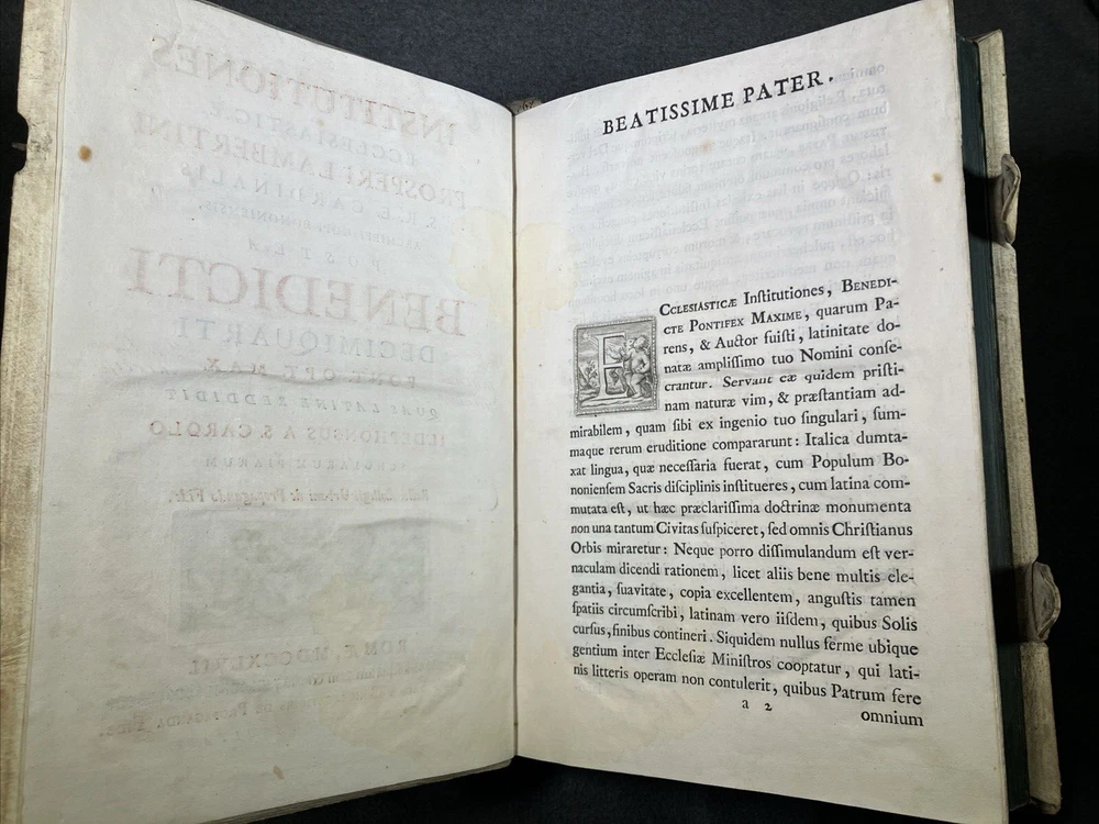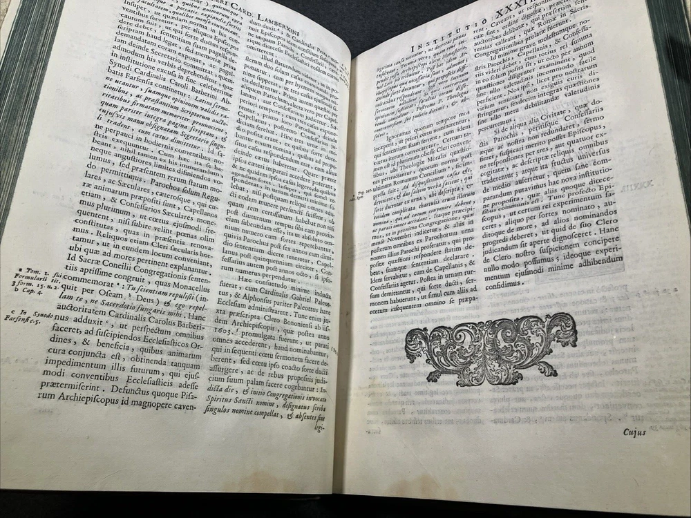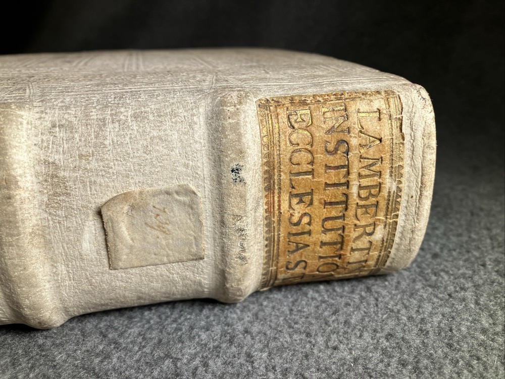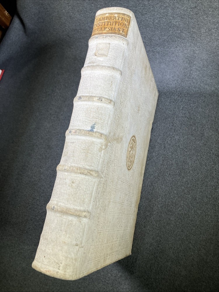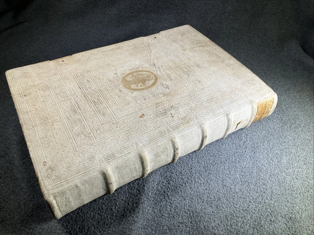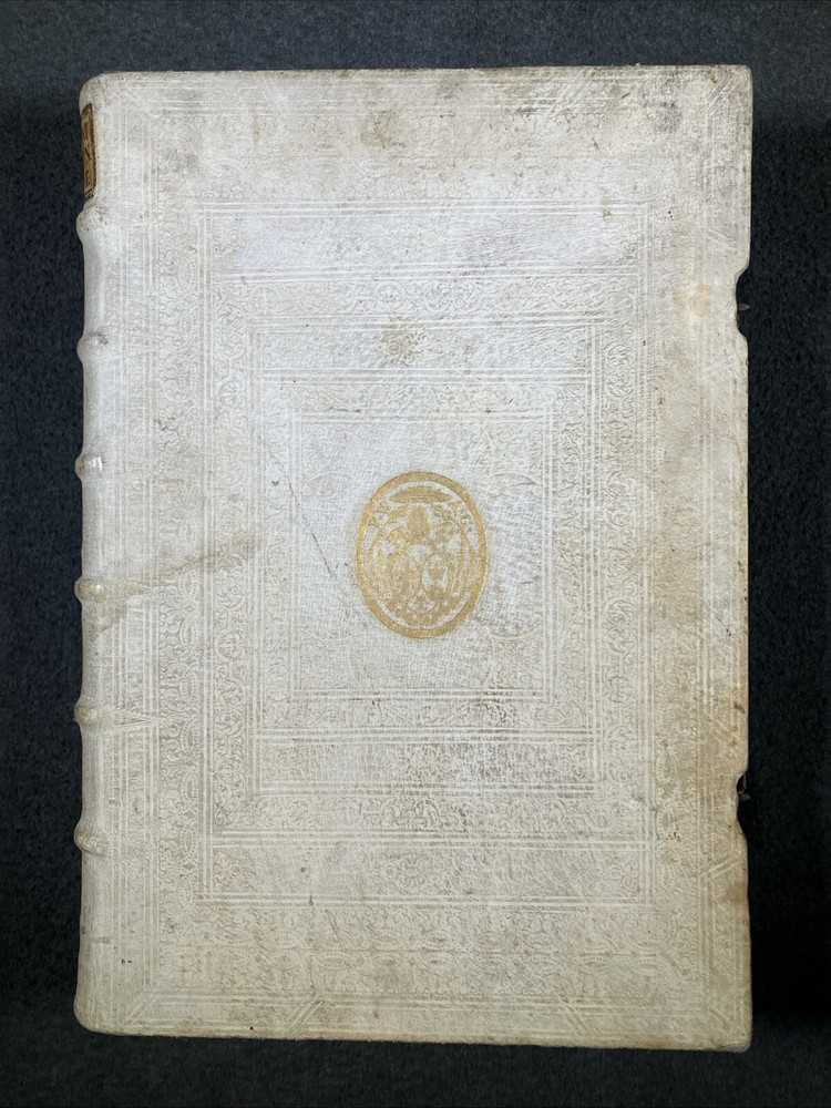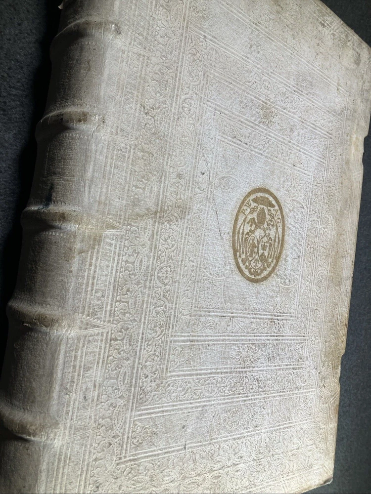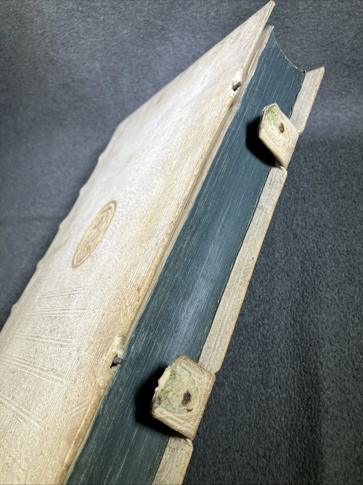 From the library of the Olmutz Monastery in Bohemia. Antique book bound in white leather (pigskin). Paper is still soft and supple. Front portions of clasps are missing. Please see the photos of this rare and precious volume for a better idea of the condition. ----------------------------------------- Thank you for visiting MontanaVTG Our family are passionate readers, listeners, and collectors of great books, records, and CDs... and sensuous gadgeteers who put our vintage machines to daily use. Based in Montana, we pack your items by hand with extreme care, and offer the fastest, most professional shipping options available. We ship all business days and most Saturday mornings as well. We want you to be happy with your purchase, and will bend over backwards to work with you if there's a problem. Thanks for checking out our wares! [250204]