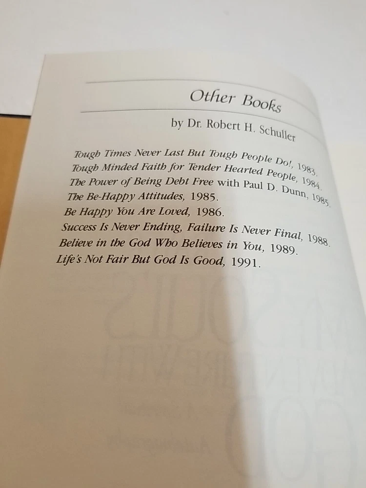 This rare collector's edition hardcover book titled "Prayer: My Soul's Adventure with God" by Robert H. Schuller is a spiritual autobiography that shares the author's personal journey with Christianity and prayer. This book is signed by Robert H. Schuller himself and features a beautiful leather-bound cover. The book is in excellent condition and has been well-maintained over the years. It contains 234 pages of inspiring stories and insights about the power of prayer. The narrative type of this nonfiction book is both insightful and engaging, making it a must-read for anyone seeking a deeper understanding of their own spiritual journey.