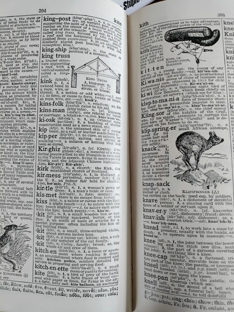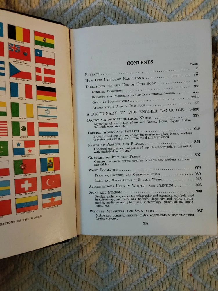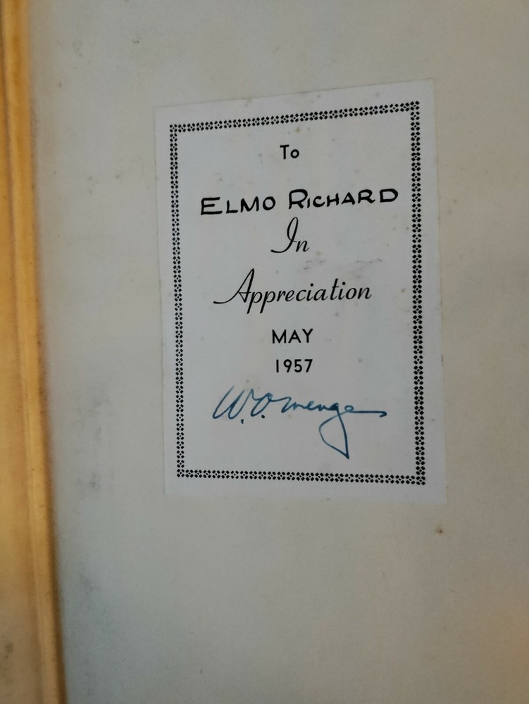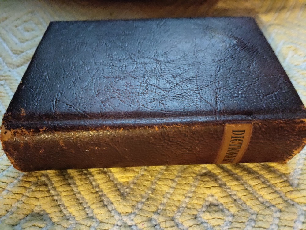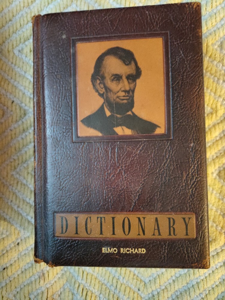 Beautifully bound leather dictionary embossed in gold" Elmo Richard" picture of President Lincoln on the front, in very good condition for the 1957 year. I cannot seem to locate where it was printed It is done by Winston dictionaries. Look at the photos there is slight shelf where some highlighting. Enjoy adding this to your collection of collectible dictionaries.
