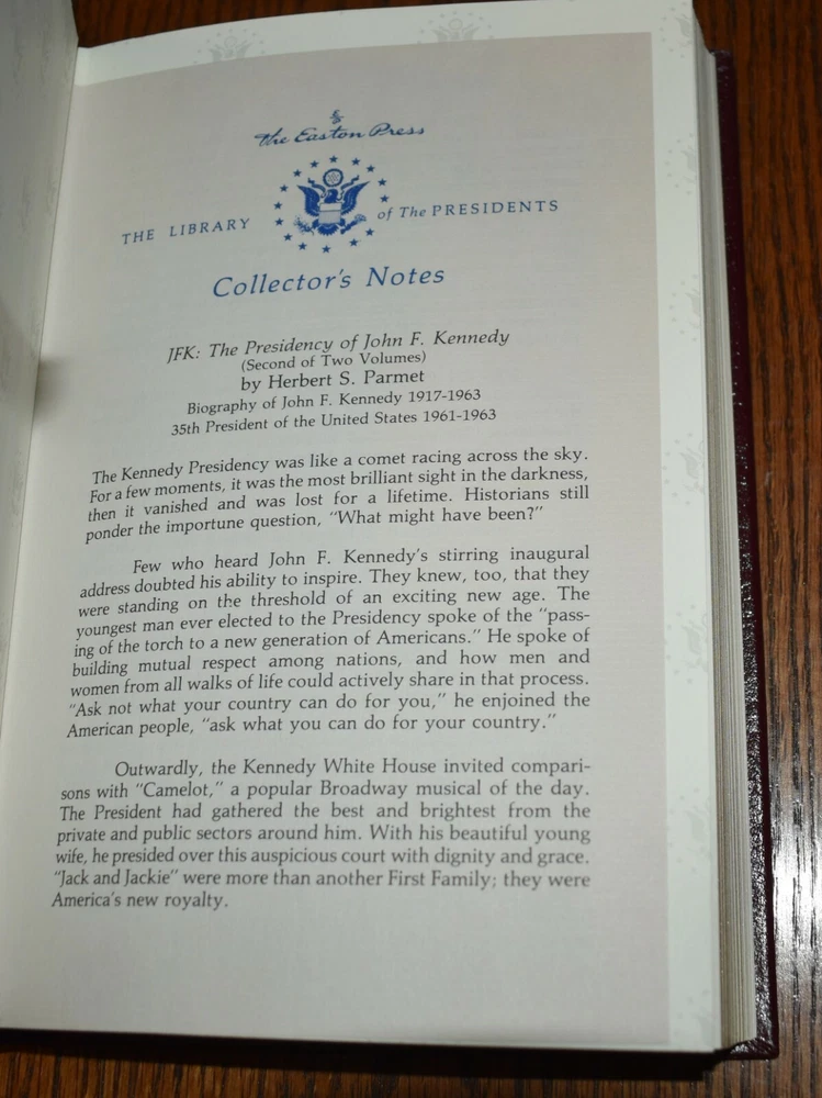 Presidency of John F. Kennedy 2 Volumes 1986 Easton Press Library of Presidents In great condition, bought then placed on my bookshelf for decades. Please see my many photos. Check out my many other listings, many more Easton Press books coming.