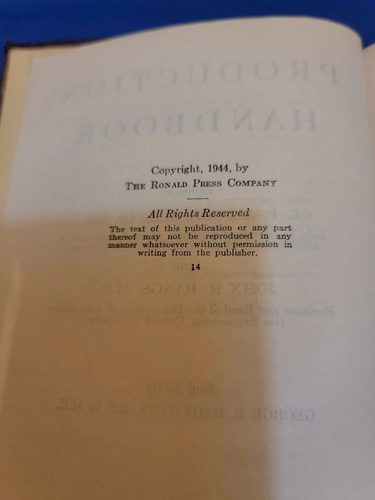 Production Handbook L.P.Alford - J. R. Bangs Ronald 1944 Great Condition. Vintage Pre-owned book. Nice used condition but used. Please see pictures and message with any questions 🙂 sold as is used