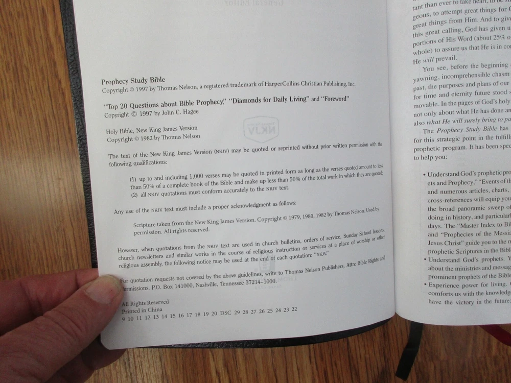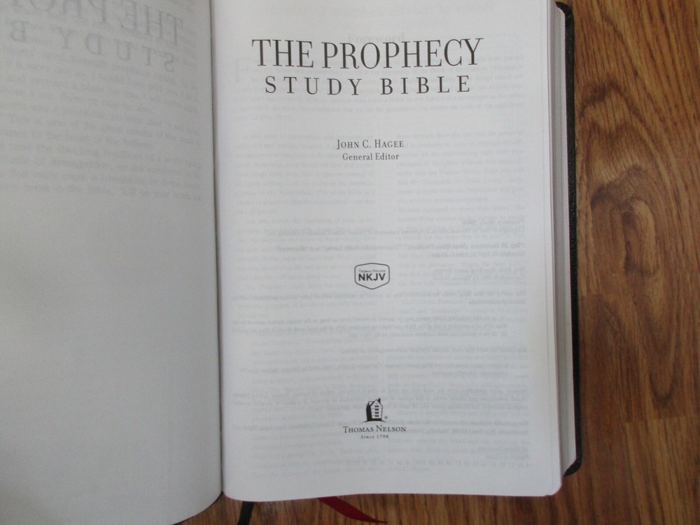 New in Original Box PROPHECY STUDY BIBLE John C. Hagee - General Editor New King James Version Thomas Nelson Publishing Black Bonded Leather BX-BK-Whte...