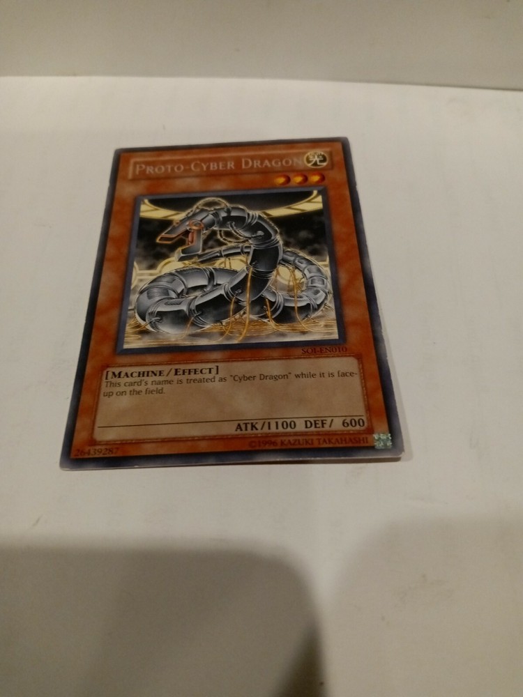 Proto-Cyber Dragon - SOI-EN010 - Rare Unlimited Shadow of Infinity Yugioh New. Shadow of Infinity was the 18th expansion of the Yugioh TCG. It was released in February of 2006 and consisted of 85 cards total. Noteworthy cards from Shadow of Infinity include Cyber Laser Dragon , Demise, King of Armageddon & Treeborn Frog . The 3 “Sacred Beasts” from the Yu-Gi-Oh GX anime were released in this set. Also included are: many Insect-Type monsters, new Ritual Monsters, and support for “Cyber Dragon” and “Ancient Gear” archetypes. Released along with this set was the Shadow of Infinity: Special Edition set. Shadow of Infinity consists of the following rarity breakdown: 35 Commons 14 Rares 7 Super Rares 4 Ultra Rares 25 Ultimate Rares