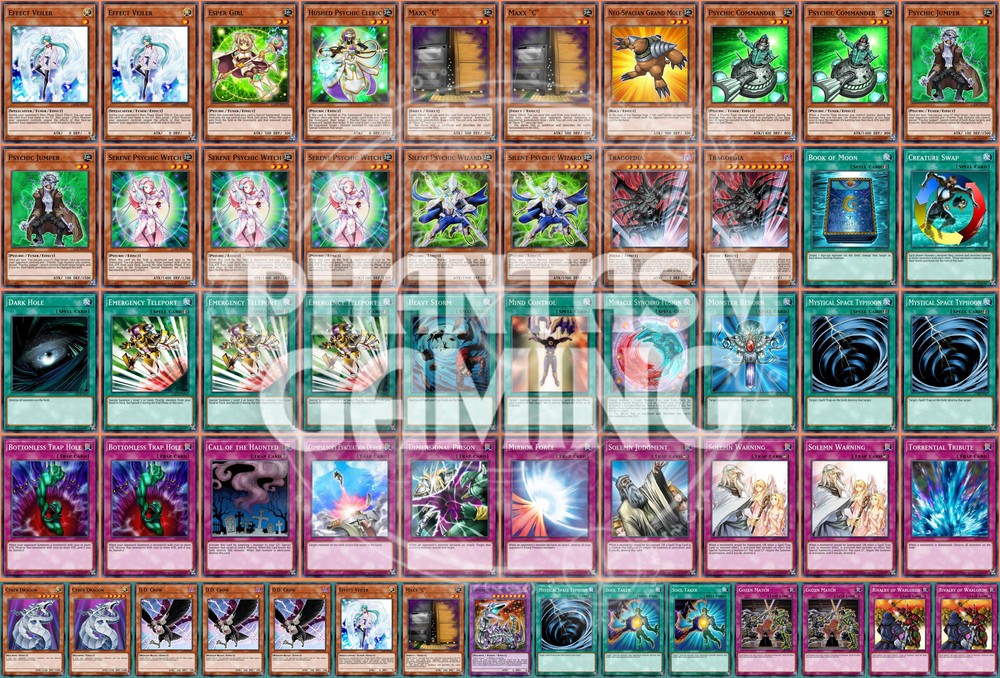 Deck Name: Psychic (A) (Wind-Up) # Main Deck (40) 2 - Effect Veiler 1 - Esper Girl 1 - Hushed Psychic Cleric 2 - Maxx "C" 1 - Neo-Spacian Grand Mole 2 - Psychic Commander 2 - Psychic Jumper 3 - Serene Psychic Witch 2 - Silent Psychic Wizard 2 - Tragoedia 1 - Book of Moon 1 - Creature Swap 1 - Dark Hole 3 - Emergency Teleport 1 - Heavy Storm 1 - Mind Control 1 - Miracle Synchro Fusion 1 - Monster Reborn 2 - Mystical Space Typhoon 2 - Bottomless Trap Hole 1 - Call of the Haunted 1 - Compulsory Evacuation Device 1 - Dimensional Prison 1 - Mirror Force 1 - Solemn Judgment 2 - Solemn Warning 1 - Torrential Tribute # Side Deck (15) 2 - Cyber Dragon 3 - D.D. Crow 1 - Effect Veiler 1 - Maxx "C" 1 - Chimeratech Fortress Dragon 1 - Mystical Space Typhoon 2 - Soul Taker 2 - Gozen Match 2 - Rivalry of Warlords You will receive all of the following cards listed above. Most cards will will be in near mint condition. In the case of certain older cards we will do our best but some cards may be light or even moderatly played in extreme condtions. Those conditions being the card has not been reprinted in a number of years and con no longer be easily purchased in light or near mint condition. Set, Rarity, and Edition will vary and cannot be special requested. These lists are constructed with least expensive rarities we have available in stock. All cards are play legal copies. Note: If purchasing a Yugioh Deck all Speed duel cards are 100% legal at all levels of play. Store Policies Here at PMG_LLC , we pride ourselves on having the best customer service around. If you have any questions or can't seem to find something that you want please do not hesitate to contact us. We will do our best to respond to all questions within one business day. Hours of Operation: Monday-Friday: 2:30pm - 10:00pm Saturday- 10:00am - 8:00pm Sunday 11:00am - 5:30pm Note: We are closed all national holidays. Info: Thank you for choosing PMG_LLC . We appreciate your business. We ship Monday through Friday to make sure you get your deck as quickly as possible. All orders priority orders can use combined shipping. In order to use the combined shipping your whole purchase needs to be checked out as one order. We ship once we have received your payment and payment has cleared. As always if you have any questions or concerns please feel free to contact us via email. Shipping Information: We ship Monday through Friday, barring national holidays during which the United States Postal Service is closed. If you purchase a card on Friday or Saturday please bear in mind it will not ship until Monday. US Shipping: First Class Mail : Free. Comes with tracking information. Priority Mail with Delivery Confirmation : $9.99 All orders are shipped in appropriate protective material inside bubble mailers. International Shipping: We do not offer international Shipping Return Policy: You must return items sold and fulfilled by PMG_LLC within 30 days of delivery to be eligible for a refund. Returns which are damaged in the mail due to improper return packaging will receive partial refunds. We will process a full refund for all items returned in their original condition. In order for us to process your full refund you must include the full name associated with the order as well as the eBay order number inside the return packaging. We will not process returns which do not include the buyer's name and order number. Requirements: Please return items with the original plastic packaging. Failure to do so may result in a partial refund. Also you must inform us of any returns you may wish to process before sending them back. Any items simply send back to us without prior contact will not be eligible for refunds. Important Notes Remember that to benefit from our domestic combined shipping on priority orders you must to pay in a single payment. If you place two separate priority orders you will be charged the $7.50 shipping fee for both orders. If you place multiple orders for Priority shipping you will be charged the corresponding shipping costs for each order, even if you place the orders on the same day. We do not refund shipping costs as we tend to package orders throughout the day and may not notice that you would otherwise have qualified for combined shipping. We want to provide you with 5 Star service and earn your Positive Feedback, so if for any reason you are not happy with your transaction, contact us before leaving feedback. Business Day - Our business day runs from Monday to Friday from 9am to 4pm, excluding US national holidays. Any orders placed or payments cleared less than 4 hours before the close of business will be considered orders from the following business day.
