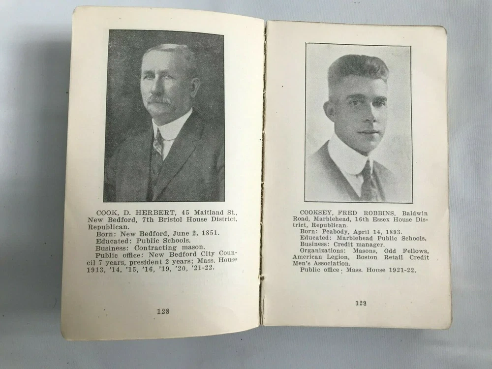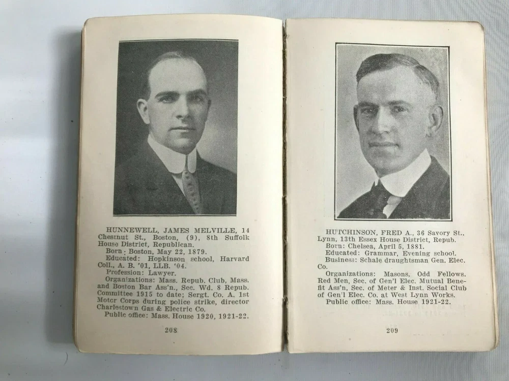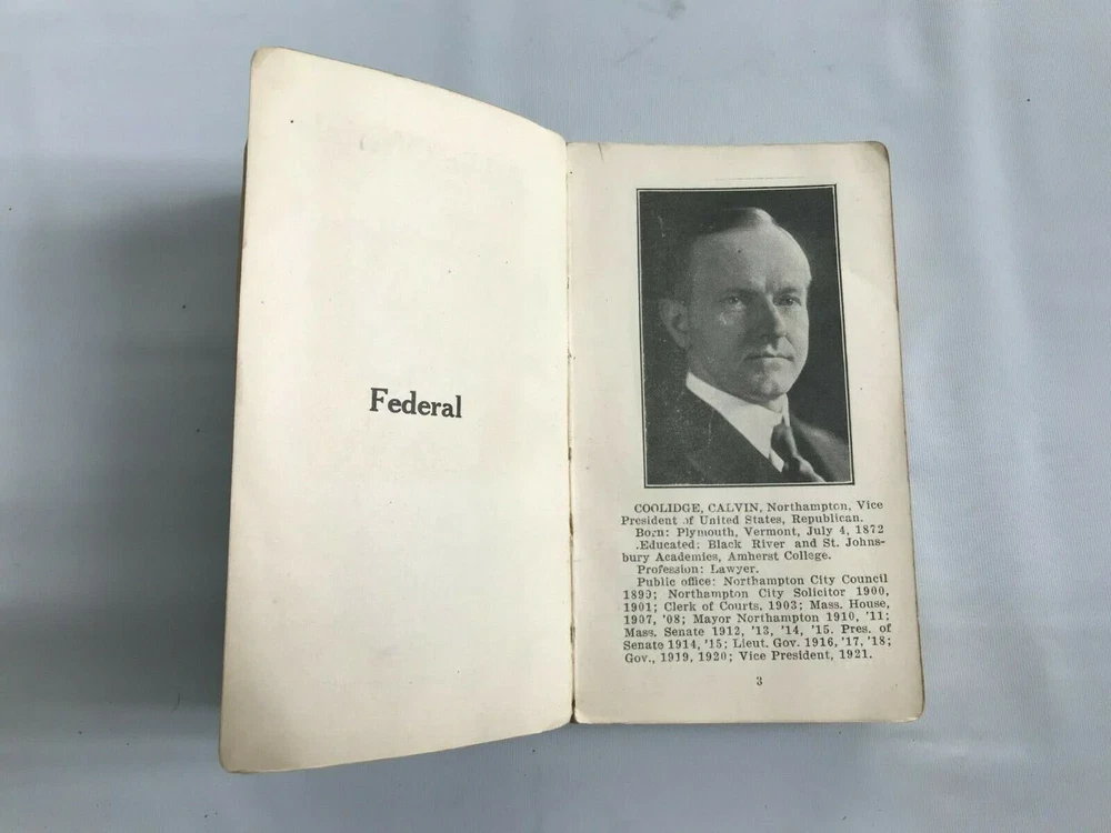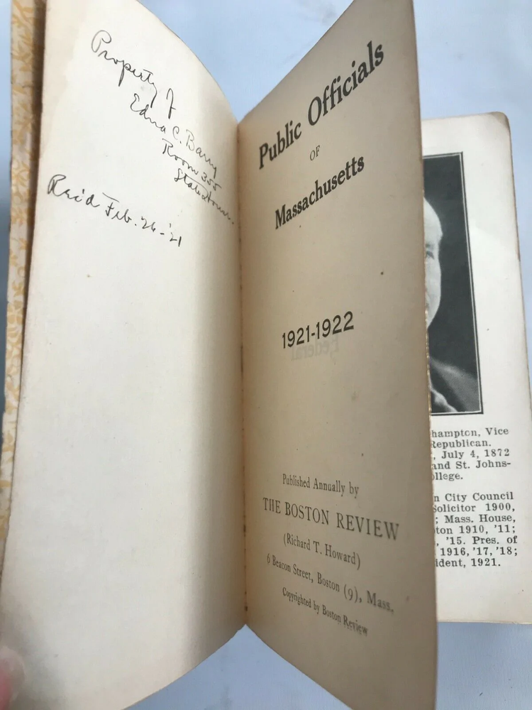 Public Officials of Massachusetts,1921-1922 Published Annually by Boston Review Condition is as-is. Missing front cover, back cover is worn but still intact. Pages inside are intact. GRADING SCALELike New: A book that looks new but has been read. Cover has no visible wear, and the dust jacket (if applicable) is included for hard covers. No missing or damaged pages, no creases or tears, and no underlining/highlighting of text or writing in the margins. May be very minimal identifying marks on the inside cover. Very minimal wear and tear. See the seller’s listing for full details and description of any imperfections. Very Good (VG): A book that does not look new and has been read but is in excellent condition. No obvious damage to the cover, with the dust jacket (if applicable) included for hard covers. No missing or damaged pages, no creases or tears, and no underlining/highlighting of text or writing in the margins. May be very minimal identifying marks on the inside cover. Very minimal wear and tear. See the seller’s listing for full details and description of any imperfections.Good (G): A book that has been read but is in good condition. Very minimal damage to the cover including scuff marks, but no holes or tears. The dust jacket for hard covers may not be included. Binding has minimal wear. The majority of pages are undamaged with minimal creasing or tearing, minimal pencil underlining of text, no highlighting of text, no writing in margins. No missing pages. See the seller’s listing for full details and description of any imperfections.Acceptable: A book with obvious wear. May have some damage to the cover but integrity still intact. The binding may be slightly damaged but integrity is still intact. Possible writing in margins, possible underlining and highlighting of text, but no missing pages or anything that would compromise the legibility or understanding of the text. See the seller’s listing for full details and description of any imperfections.As is: Describes a book that is sufficiently worn. Any missing maps or plates should still be noted. This copy may be soiled, scuffed, stained or spotted and may have loose joints, hinges, pages, etc. Condition is as-is. Missing front cover, back cover is worn but still intact. Pages inside are intact. GRADING SCALE Like New: A book that looks new but has been read. Cover has no visible wear, and the dust jacket (if applicable) is included for hard covers. No missing or damaged pages, no creases or tears, and no underlining/highlighting of text or writing in the margins. May be very minimal identifying marks on the inside cover. Very minimal wear and tear. See the seller’s listing for full details and description of any imperfections. Very Good (VG): A book that does not look new and has been read but is in excellent condition. No obvious damage to the cover, with the dust jacket (if applicable) included for hard covers. No missing or damaged pages, no creases or tears, and no underlining/highlighting of text or writing in the margins. May be very minimal identifying marks on the inside cover. Very minimal wear and tear. See the seller’s listing for full details and description of any imperfections. Good (G): A book that has been read but is in good condition. Very minimal damage to the cover including scuff marks, but no holes or tears. The dust jacket for hard covers may not be included. Binding has minimal wear. The majority of pages are undamaged with minimal creasing or tearing, minimal pencil underlining of text, no highlighting of text, no writing in margins. No missing pages. See the seller’s listing for full details and description of any imperfections. Acceptable: A book with obvious wear. May have some damage to the cover but integrity still intact. The binding may be slightly damaged but integrity is still intact. Possible writing in margins, possible underlining and highlighting of text, but no missing pages or anything that would compromise the legibility or understanding of the text. See the seller’s listing for full details and description of any imperfections. As is: Describes a book that is sufficiently worn. Any missing maps or plates should still be noted. This copy may be soiled, scuffed, stained or spotted and may have loose joints, hinges, pages, etc. eBay integration by