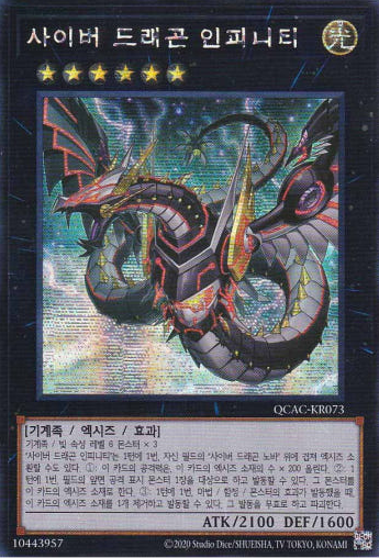 [QCAC-KR073 A] Secret Rare A "Cyber Dragon Infinity" Korean Product Description: [QCAC-KR073 A] Secret Rare A "Cyber Dragon Infinity" Korean Single Card + Sleeve + Top loader (Case) Mint Condition (Made in Korea) 100% Genuine Product of Konami (Korean Version) All singles cards are never used, fresh from the pack. Available for combined shipping (send invoice or partial refund after payment) Store Policy Items will be shipped from South Korea, 1 ~ 3 business days after order. All the items, we are selling, include manufacturers' warranty and do strict inspection & packaging before shipping. We use Korea Post / Rincos International Priority Airmail. All of our shipping provide tracking number. (Standard & Expedited) Standard: 10 ~ 20 business days (+ Tracking Number) Expedited: 5 ~ 10 business days (+ Tracking Number) We do accept all reasonable request and offer.