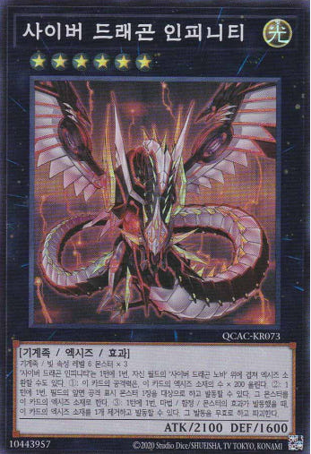 [QCAC-KR073] Super Rare "Cyber Dragon Infinity" Korean Product Description: [QCAC-KR073] Super Rare "Cyber Dragon Infinity" Korean Single Card + Sleeve + Top loader (Case) Mint Condition (Made in Korea) 100% Genuine Product of Konami (Korean Version) All singles cards are never used, fresh from the pack. Available for combined shipping (send invoice or partial refund after payment) Store Policy Items will be shipped from South Korea, 1 ~ 3 business days after order. All the items, we are selling, include manufacturers' warranty and do strict inspection & packaging before shipping. We use Korea Post / Rincos International Priority Airmail. All of our shipping provide tracking number. (Standard & Expedited) Standard: 10 ~ 20 business days (+ Tracking Number) Expedited: 5 ~ 10 business days (+ Tracking Number) We do accept all reasonable request and offer.