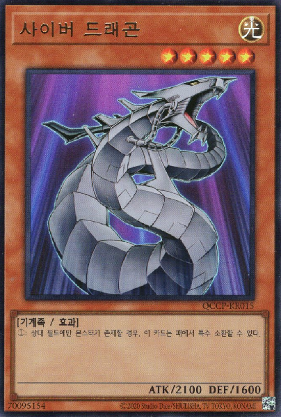 [QCCP-KR015] Ultra Rare "Cyber Dragon" Korean Product Description: [QCCP-KR015] Ultra Rare "Cyber Dragon" Korean Single Card + Sleeve + Top loader (Case) Mint Condition (Made in Korea) 100% Genuine Product of Konami (Korean Version) All singles cards are never used, fresh from the pack. Available for combined shipping (send invoice or partial refund after payment) Store Policy Items will be shipped from South Korea, 1 ~ 3 business days after order. All the items, we are selling, include manufacturers' warranty and do strict inspection & packaging before shipping. We use Korea Post / Rincos International Priority Airmail. All of our shipping provide tracking number. (Standard & Expedited) Standard: 10 ~ 20 business days (+ Tracking Number) Expedited: 5 ~ 10 business days (+ Tracking Number) We do accept all reasonable request and offer.