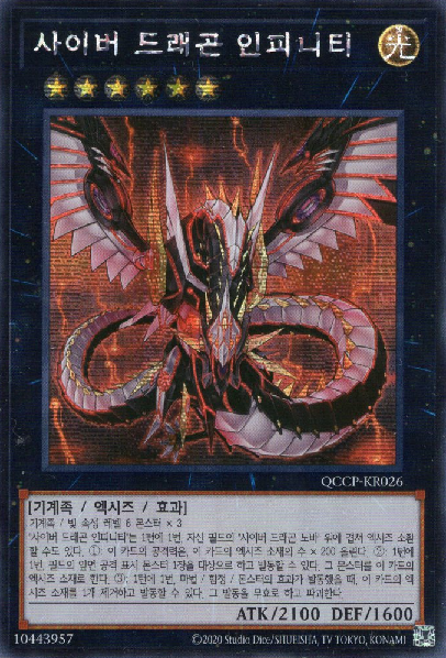 [QCCP-KR026] Secret Rare "Cyber Dragon Infinity" Korean Product Description: [QCCP-KR026] Secret Rare "Cyber Dragon Infinity" Korean Single Card + Sleeve + Top loader (Case) Mint Condition (Made in Korea) 100% Genuine Product of Konami (Korean Version) All singles cards are never used, fresh from the pack. Available for combined shipping (send invoice or partial refund after payment) Store Policy Items will be shipped from South Korea, 1 ~ 3 business days after order. All the items, we are selling, include manufacturers' warranty and do strict inspection & packaging before shipping. We use Korea Post / Rincos International Priority Airmail. All of our shipping provide tracking number. (Standard & Expedited) Standard: 10 ~ 20 business days (+ Tracking Number) Expedited: 5 ~ 10 business days (+ Tracking Number) We do accept all reasonable request and offer.