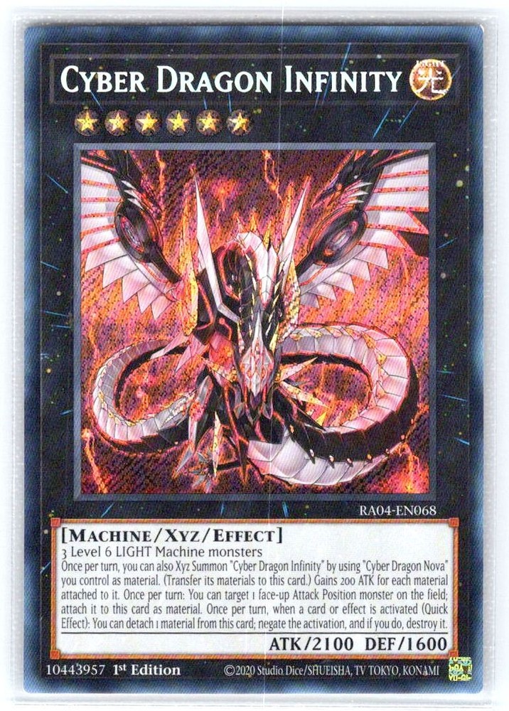 This is a nice example of a Quarter Century Stampede #RA04-EN068 Cyber Dragon Infinity (Secret Rare) Other important information about this card: Secret Rare In 2025 Cyber Dragon Infinity (Secret Rare) played for the . Please check out our other listings for more great cards.