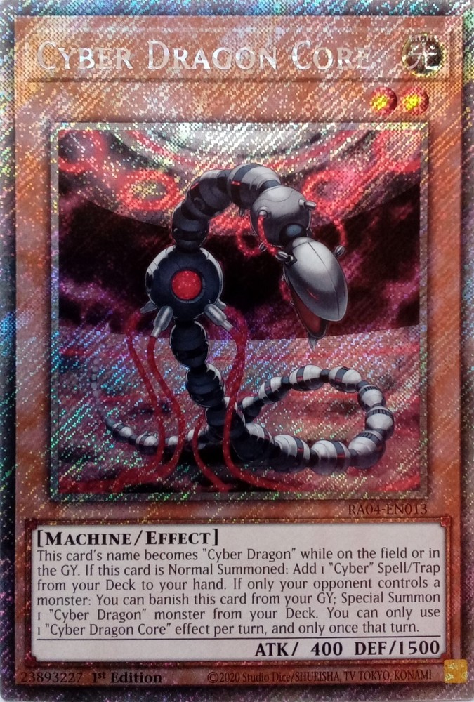 RA04-EN013 CYBER DRAGON CORE PLATINUM SECRET RARE 1ST EDITION ALL YU-GI-OH CARDS I SELL ARE KONAMI TOURNAMENT LEGAL. CARDS ARE ALL BRAND NEW AND IN MINT CONDITION. POSTAGE IS FREE SO YOU CAN BUY AS MANY CARDS AS YOU WANT FROM US AND NOT PAY A PENNY POSTAGE. IF YOU HAVE ANY QUESTIONS PLEASE FEEL FREE TO CONTACT ME. Track Page Views With Auctiva's FREE Counter
