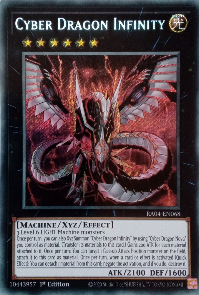 RA04-EN068 CYBER DRAGON INFINITY SECRET RARE 1ST EDITION ALL YU-GI-OH CARDS I SELL ARE KONAMI TOURNAMENT LEGAL. CARDS ARE ALL BRAND NEW AND IN MINT CONDITION. POSTAGE IS FREE SO YOU CAN BUY AS MANY CARDS AS YOU WANT FROM US AND NOT PAY A PENNY POSTAGE. IF YOU HAVE ANY QUESTIONS PLEASE FEEL FREE TO CONTACT ME. Track Page Views With Auctiva's FREE Counter