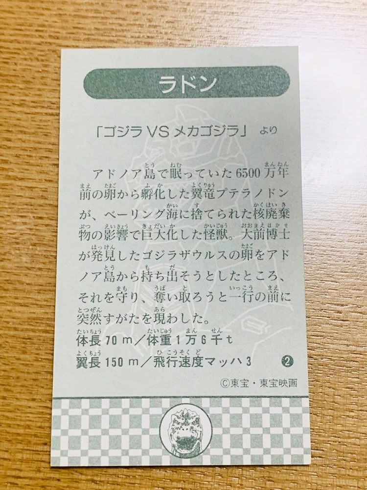 RADON Godzilla Card No.2 TOHO Japan G-60 Collectible Trading Card