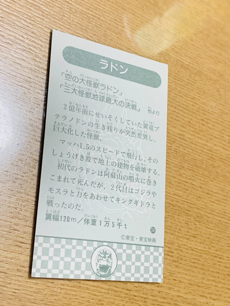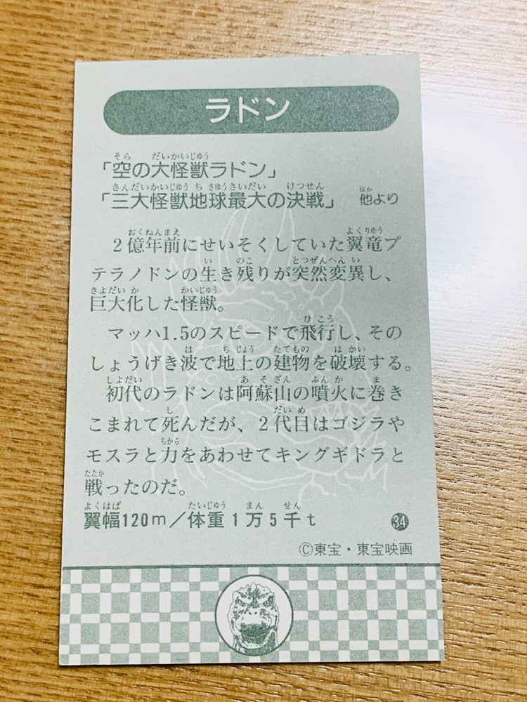 RADON Godzilla Card No.34 TOHO G-61 Japan Vintage Collectible