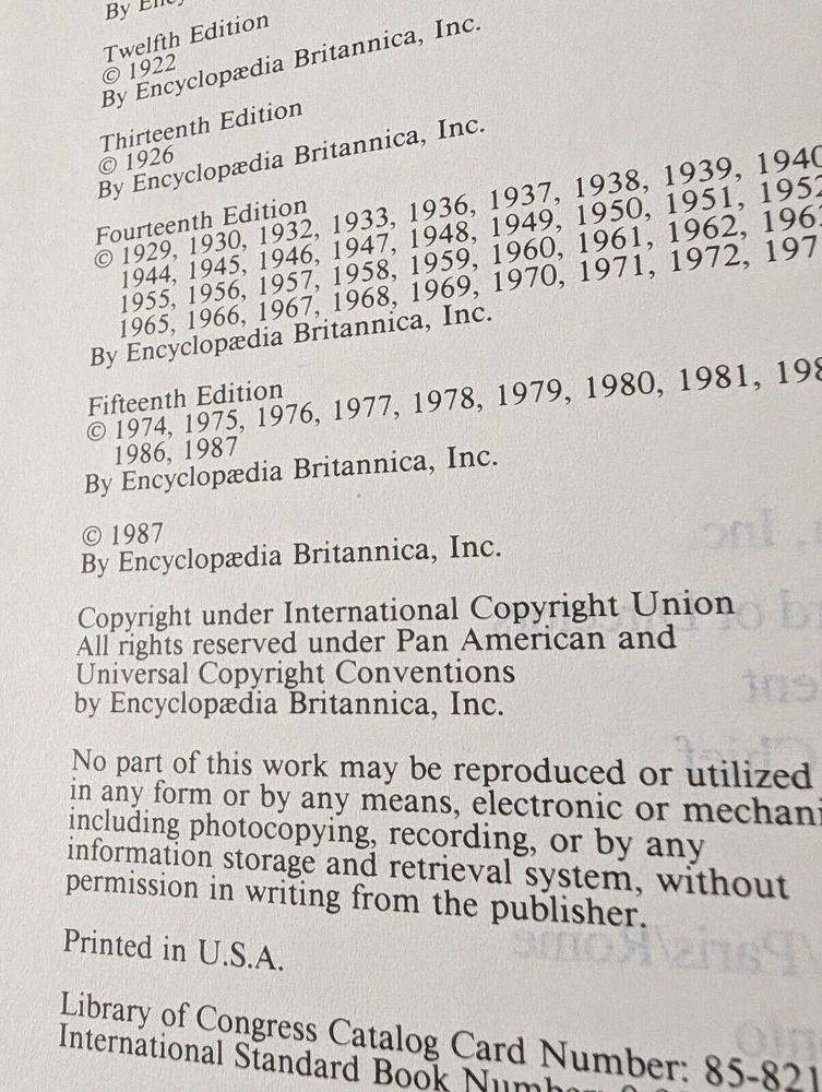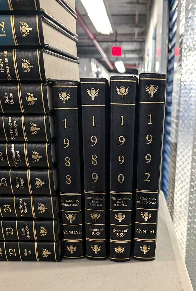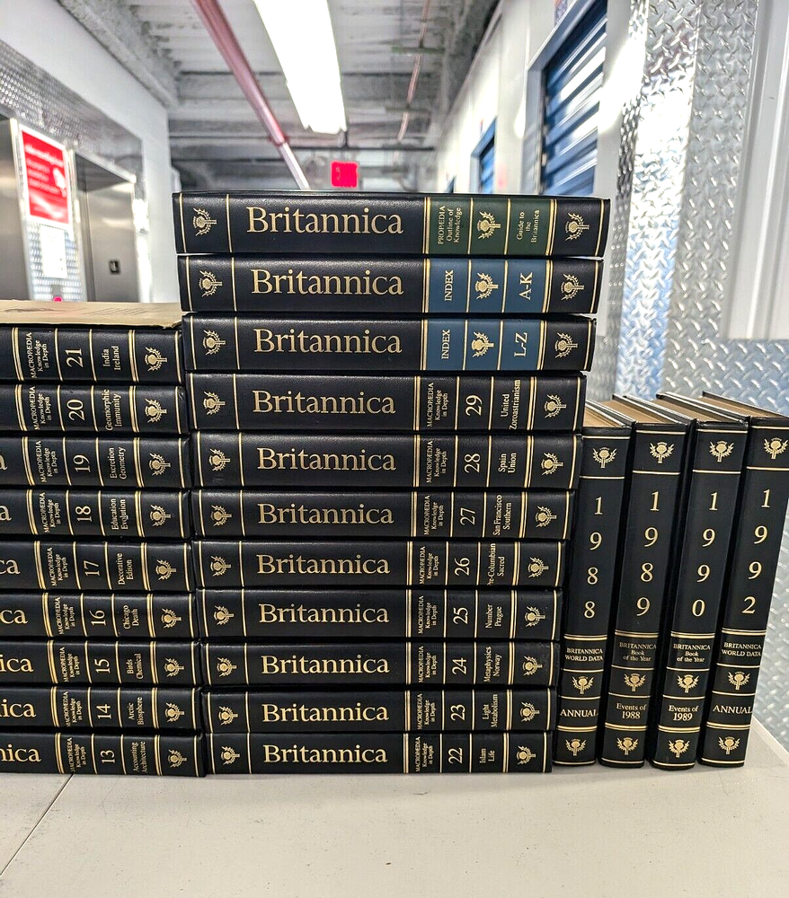 Vintage Encyclopedia Britannica 1987 Dedicatory Edition is a 36-volume Set dedicated to U.S. President Ronald W. Reagan & Her Majesty Queen Elizabeth II Step into a world of timeless knowledge and discovery with the Vintage Encyclopedia Britannica 1987 Dedicatory Edition 36-Volume Set, a prestigious collection dedicated to U.S. President Ronald W. Reagan and Her Majesty Queen Elizabeth II. This unique edition stands as a testament to the pursuit of knowledge and intellectual excellence, while honoring two iconic figures of history. What’s Included: Micropedia – 12 Volumes: Quick-reference entries providing essential facts across various subjects. Macropedia – 17 Volumes : In-depth articles offering detailed analysis and comprehensive exploration of topics, perfect for scholarly research. Index – 2 Volumes: A user-friendly guide to help you navigate this vast collection. Propedia – 1 Volume: An outline of knowledge, serving as a guide for readers to delve deeper into the set's vast array of subjects. Annuals – 2 Volumes (1988 & 1992): Offering historical and cultural insights into key events from those years. Year Books – 2 Volumes (1989 & 1990): Capturing the major events and developments of the late 1980s and early 1990s, these yearbooks add significant value to the collection. This Vintage 1987 Dedicatory Edition is a fully intact timepiece, preserving a wealth of knowledge in remarkable condition. While two volumes display minor scratches due to their placement on the bookshelf, the set remains highly readable, with no notations on the pages. The dedication to President Ronald W. Reagan and Queen Elizabeth II adds historical significance, making this set not only an educational tool but also a collector's item. Please check the eBay listing photos for the current condition. Why This Set Stands Out: Dedicatory Edition: Dedicated to two of the most influential figures of the 20th century, this set honors both the political leadership of Ronald W. Reagan and the timeless legacy of Queen Elizabeth II. Educational and Historical Value: Renowned for its rigorous scholarship, the Britannica 15th Edition offers an unparalleled educational resource. The dedicatory nature enhances its appeal for collectors and history lovers. Ideal for Research and Learning: Perfect for students, researchers, and those passionate about deep, well-researched information. This set provides comprehensive knowledge across a wide range of subjects. Shipping Information: This set will be shipped in four (4) heavy-duty boxes via U.S.P.S. media mail rates. Each box will be securely taped and marked “fragile” to ensure safe delivery to your home or office. Payment Information: Please make your payment within 3 days of purchase to ensure a smooth transaction and prompt delivery of this prestigious set. Your feedback is highly appreciated as it helps us continue to provide exceptional products and service. Should you have any questions or need further information, please feel free to message us at any time. We are here to assist you and ensure your buying experience is excellent.