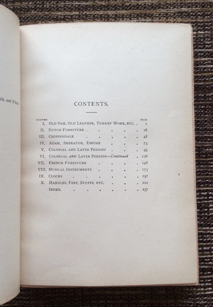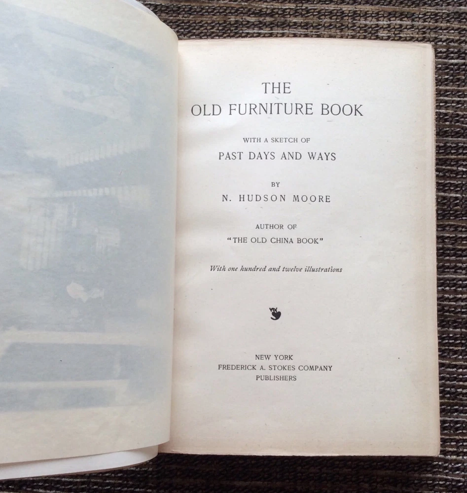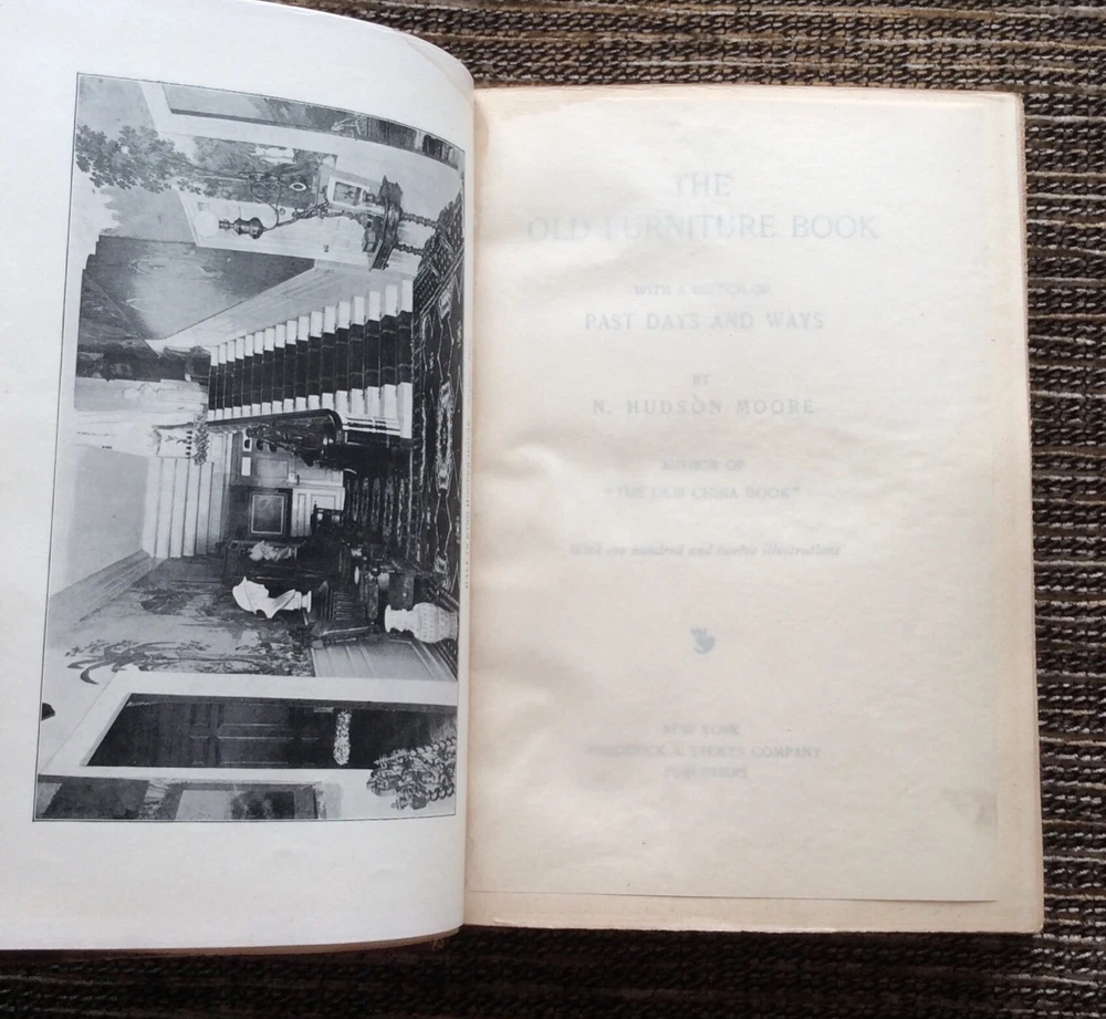 This listing is for: " The Old Furniture Book " with a Sketch of Past Days and Ways Author : N. Hudson Moore Copyright : 1903 Pages : 254 Hardcover with leather spine and corners Description : Those who own an old piece of furniture feel an added degree of affection for it if we can give it an approximate date and assign it to a maker or a century. It takes more than being old to determine the value of an antique. Not only must an item be of high quality, it must have artistic merit. If you want to know more about an old treasure, The Old Furniture Book includes one hundred and twelve illustrations so you can learn what makes up a masterpiece of antique furniture as well as develop your own eye for quality. Don't get a reprint of the fascinating and culturally important work when you can own an original, first edition copy. Condition : This vintage book is over one hundred years old and in good to very good condition. There is wear and discoloration on the hardcover (see pictures), but the gilt is still bright. The inside pages are in good to very good condition with no ripped, bent, creased, loose or missing pages. No writing or highlighting. The page edges are deckled. The binding is secure. Note: the pages have tanned slightly due to aging (see pictures), and there is a number written on one of the first end pages. BUY WITH CONFIDENCE I NEVER use stock photos. I take the time to carefully inspect and photograph each item, doing my best to point out any imperfections. I personally handle everything from the detailed listing to the damage-proof shipping. I will treat your order with the care and attention it deserves. PERSONAL SERVICE I am dedicated to providing quality items that have been accurately described, carefully packaged, and promptly shipped to you. If a particular aspect or condition is important to you, please do not hesitate to contact me. I am happy to answer all questions and send additional photos if needed. NEW BOOKS LISTED DAILY Please check out my Ebay store at janas_shelfindulgences or http://stores.ebay.com/mypermanentink . I specialize in signed copies, first editions, limited editions, and scarce out-of-print titles. You may find something you never knew you wanted! PERSONAL GUARANTEE You will get professional, personal service as noted in my 100% feedback. If for any reason you feel I have not met your expectations, please allow me the opportunity to resolve the issue. My goal is a satisfied customer who will come back and buy again! INTERNATIONAL BUYERS I only ship via EBay's "Global Shipping Program" for tracking and reconcile purposes. Your item will be carefully and securely wrapped and protected for the long journey. Additional fees will apply. Every item comes from a smoke-free home.