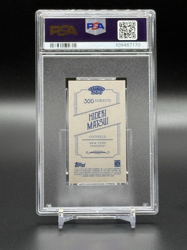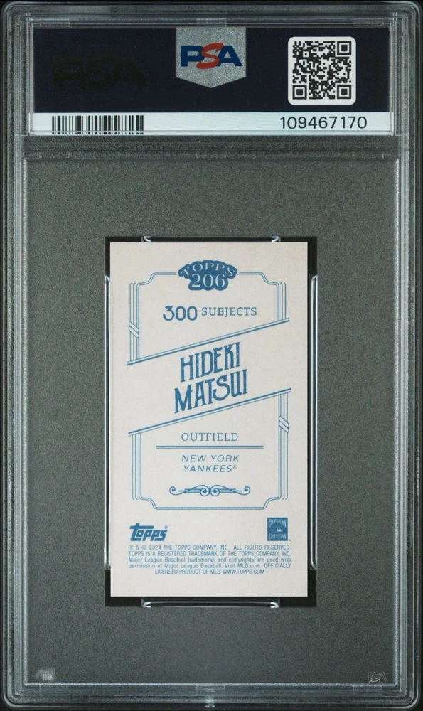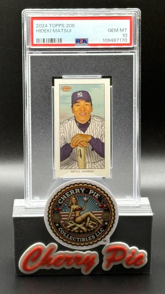 Cherry Pie Collectibles Cherry Pie Collectibles First-Touched Treasures TM , Virgin Shipping TM RARE 2024 Topps 206 Hideki Matsui New York Yankees PSA 10 GEM MINT Free UPS Ground shipping. No USPS roulette. Hideki Matsui didn’t just cross an ocean — he crossed into baseball legend . A 2× MLB All-Star , World Series champion, and 2009 World Series MVP for the New York Yankees, “Godzilla” had already left his mark on Japan with 3 Central League MVP awards and 8 Best Nine honors before even stepping onto American soil. This 2024 Topps 206 PSA 10 GEM MINT captures Matsui in pinstripes, smiling but built for damage — and it’s the only one graded as of April 28, 2025. From Tokyo to the Bronx, this card stands tall like the man himself. Cherry Pie Collectibles — where legends don’t just travel, they roar. We don’t hype. We don’t haggle. We list. We light cigars. We wait. Step correct—or keep scrolling. But when you buy from us? Big League service —speedy, no errors, safe at home. Yeah, we usually charge shipping. But do you want your tracking marked “ business closed ” while you’re sitting inside like Tony Soprano waiting on your cherry treasure? Be our guest...somewhere else. We let Big Brown handle it—UPS Ground, insured, tracked, and done right. COMBINED SHIPPING ON UP TO 20—that’s TWENTY—items. Proper. INSURED & SHIPPED SAFELY & SECURELY via UPS Ground. *PSA Population as of time of original listing 4/28/25. Thanks for checking out our cherry-picked collectible from Cherry Pie Collectibles LLC. We specialize in pristine, high-quality items, meticulously curated from our vaults and those of fellow collectors and handled with our signature First-Touched Treasure Policy TM , ensuring your treasure arrives in pristine, virgin condition. Peek Inside Our Cherry Treasures Pricing Policy: Firm, Fair, and Final: Our prices reflect the rarity, quality, and value we place on each collectible. We do not negotiate. Each piece is carefully selected, priced, and ready for someone who appreciates its worth. We are not concerned with what it sold for in the past —we set our prices based on what it means to us. If you value it, buy with confidence. If not, move along. Persistent attempts at haggling will earn you a ticket to Blocksville. Our Promise: At Cherry Pie Collectibles, we guarantee Virgin Shipping TM . Your item arrives unspoiled and untouched by the grubby hands of amateurs. Honest descriptions, sharp photos, and pristine handling; because we do not mess around. Photos Do Not Lie: What you see is what you get. No filters, no tricks. Just honest representation of what is coming your way. Graded Items: We handle all graded items with care ensuring they arrive in mint condition. While we make no guarantees about the slab itself (minor scuffs possible), we disclose any flaws up front. Raw Cards: May show scratches, edge wear, soft corners, etc. If you need Gem Mint, grab the graded copy. No returns on raw. We follow eBay’s card condition guidelines . Shipping Details: Prompt and Secure: We pack with care and ship insured via UPS Ground (we choose—no USPS roulette). Message us before buying if you really need USPS. Flat Rate: One fee up to 20 items. Add as many as you like, pay once. Quality is worth it. Virgin Shipping TM : No rough handling, no unseemly fondling—the item stays pristine. All Sales Final: No refunds, no returns, no buyer’s remorse. Once it lands in your hands, it’s yours forever—like that tattoo you regret. Untouched and Ready! Get your Cherry Pie now! Peek Inside Our Cherry Treasures Cherry Pie Collectibles First-Touched Treasures TM , Virgin Shipping TM New Orleans, Louisiana © 2024 Cherry Pie Collectibles LLC All rights reserved.