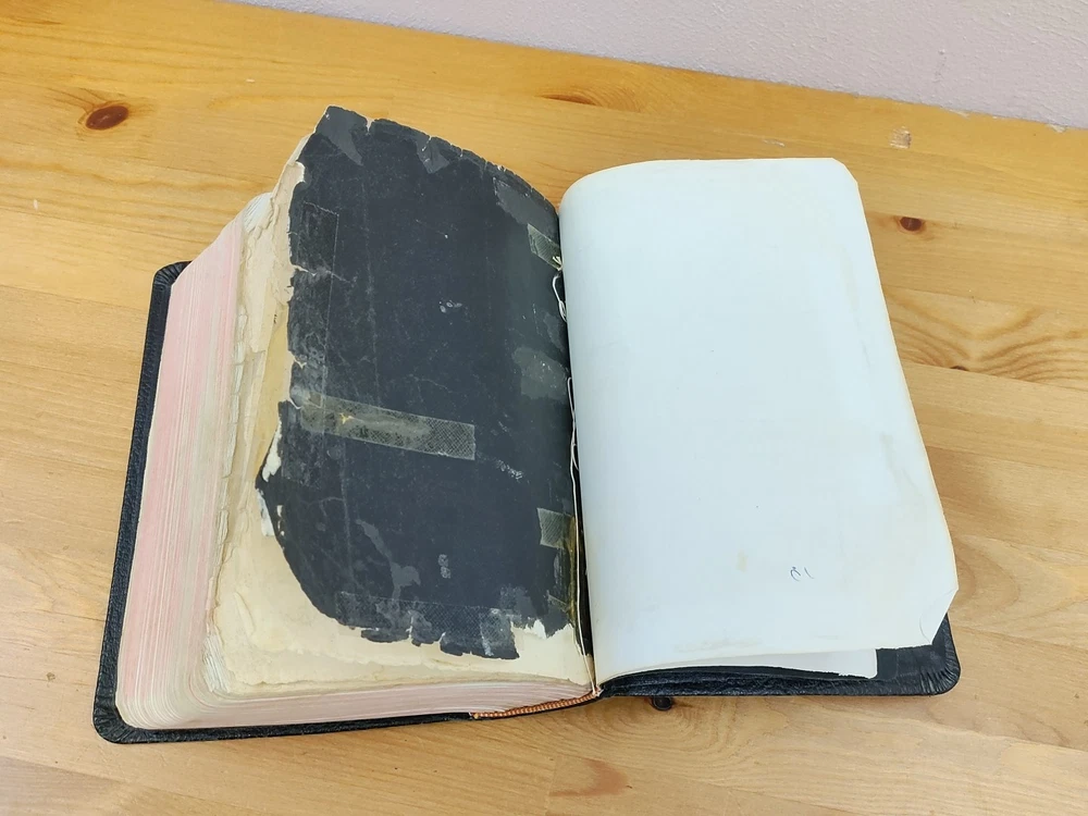 Minor cosmetic flaws, writing and marks, some pages taped together, binding intact, free shipping, see pictures.