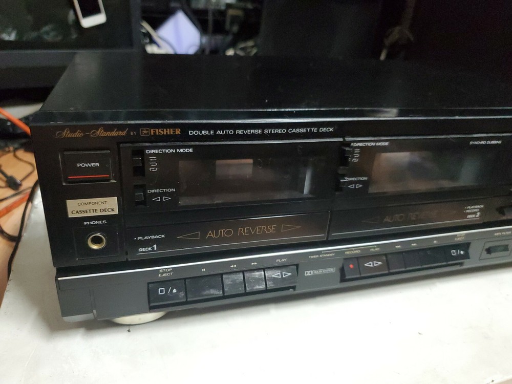 RARE FISHER CR-W780A STEREO DOUBLE CASSETTE DECK. Need replacement the belts. All the bell gone from long time no used. Now power up but didn't run the tape need replace the belt. The belts sell in ebay market around 18 dollars. Any way I would like sale for part or repair, not working item Please look all the pictures for sure what you will get. Thanks for looking! Good luck! No PO Box shipping