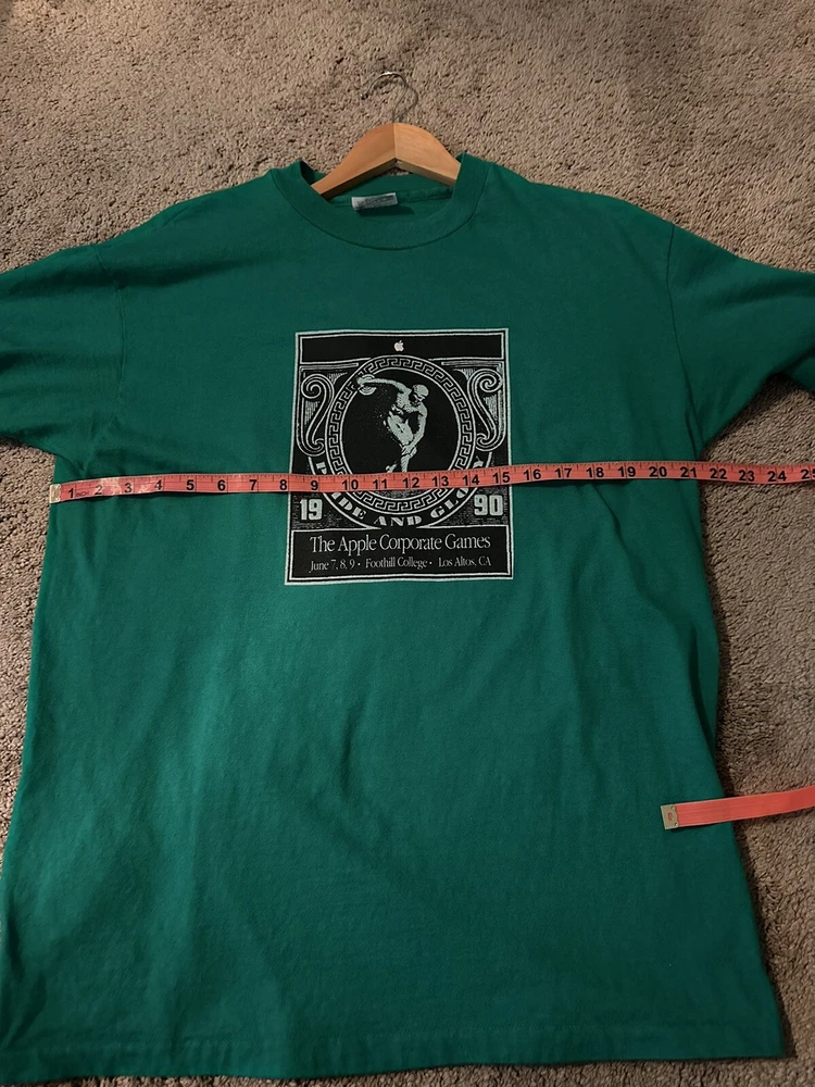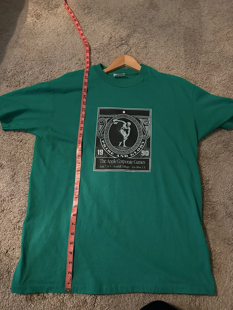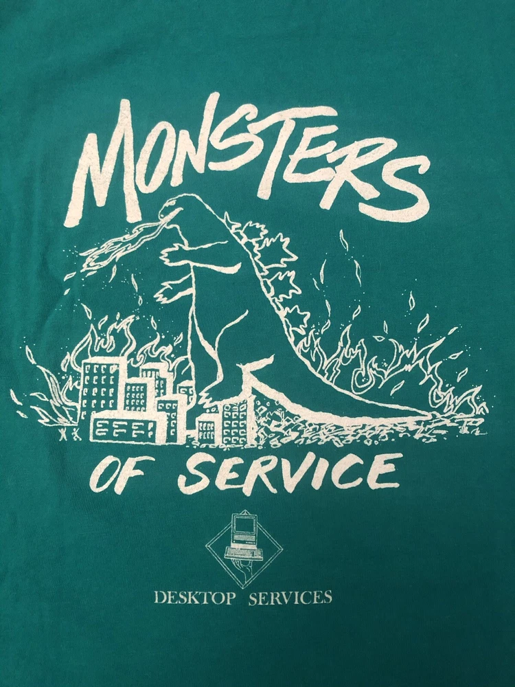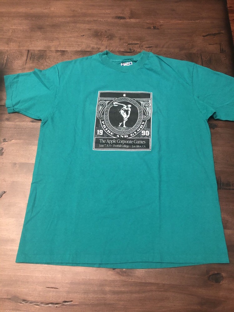 RARE Godzilla Macintosh Shirt 90’s Vintage Apple Corporate Games Exclusive. Condition is "Pre-owned". Shipped with USPS First Class. Extremely rare t shirt given to employees in the corporate office in Los Altos California in 1990. Nick named “Monsters of Service” this teams graphic was Godzilla as shown on the back. Single stitch all the way around on a Hanes Beefy T tag. Fits true to size. Please ask any question before purchase.