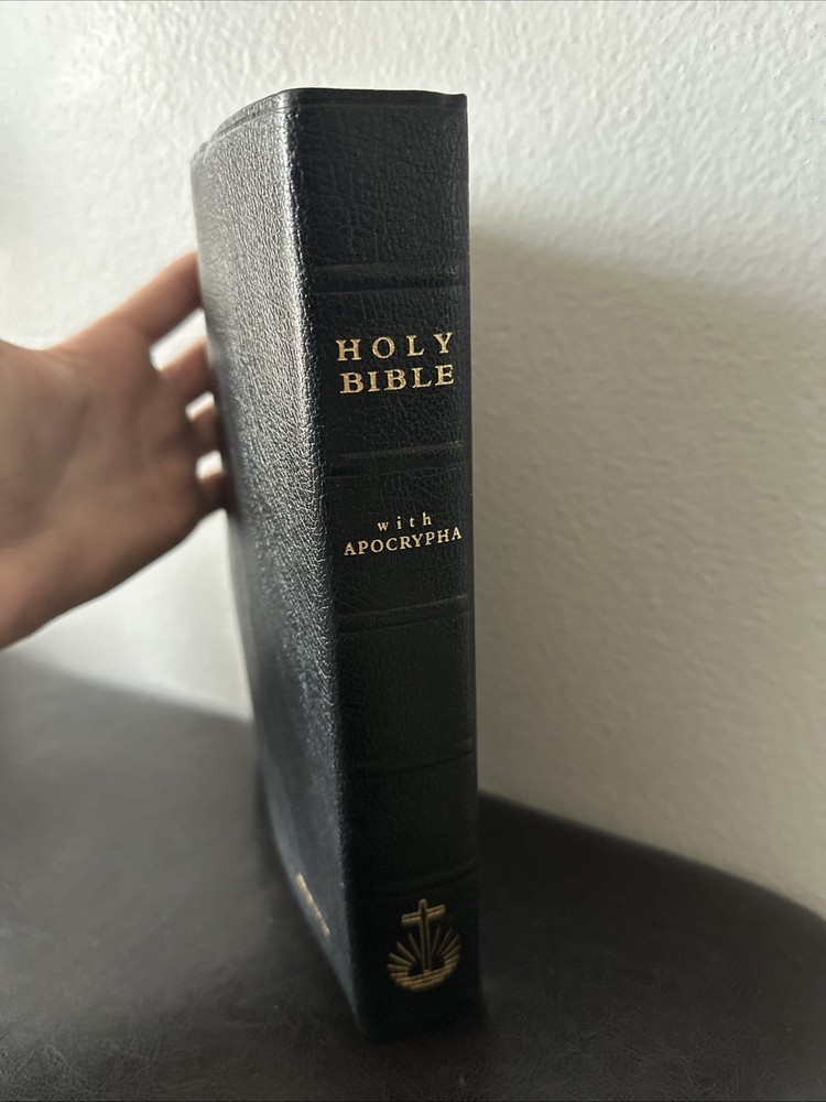 RARE NKJV HOLY BIBLE w/ Apocrypha Reference Edition 1994 Thomas Nelson Leather Some wear as pictured. In good condition....
