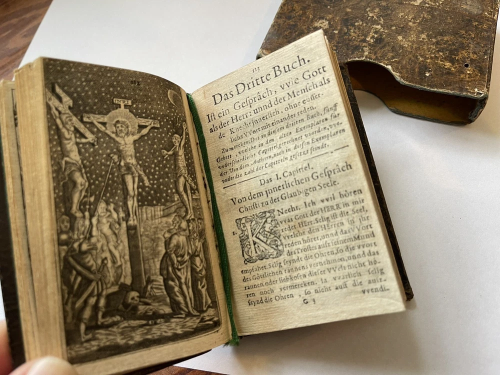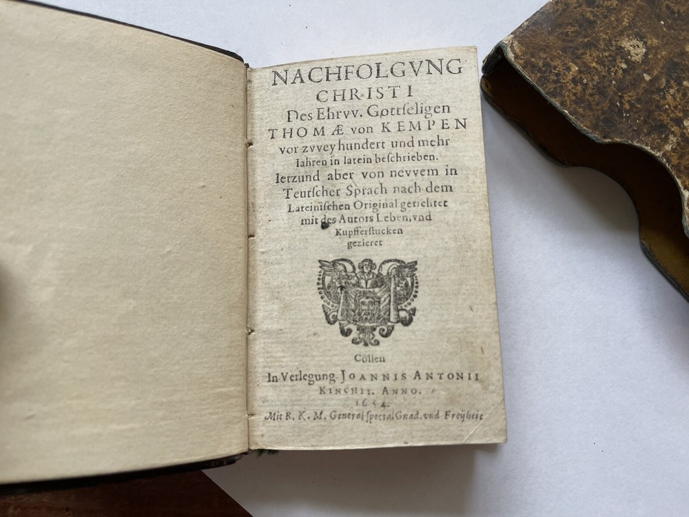 German version of Thomas a Kempis’s “The Imitation of Christ” published in 1654! In great condition with the original slip cover. Extremely hard version to find. Please see photos....