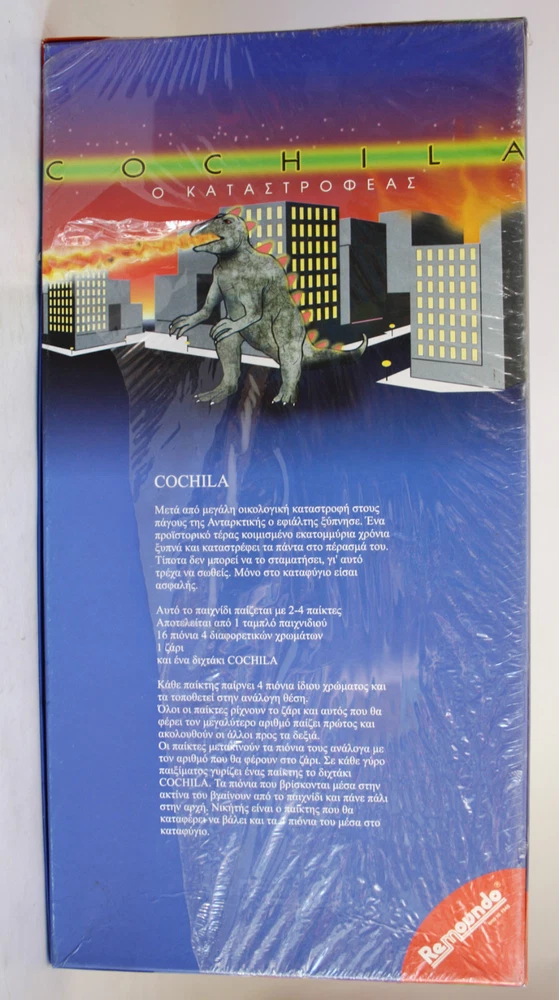 Up for sale this amazing and very rare, vintage COCHILA THE DESTROYER "GODZILLA" Greek edition board Game made in Greece by Remoundo 1997 ! Brand new and factory sealed in box in great condition ! The plastic wrap is a bit teared. Please check the photos ! What you see is what you will receive. A highly collectible item ! An excellent addition to your vintage board games collection ! --------------------- Greek customers, wait for our invoice before you pay so we can adjust the right shipping cost! Please message us using my eBay messages with any questions you may have before you bid/buy. Also check out our other vintage items and dont forget to add us to your favorite list ! Buyers with zero feedback please message us first using my eBay messages before bidding/buying. Combined shipping is available when buying additional items. Please wait to send you the final invoice. ---- Shipping cost with registered mail : - Greece: 4.99$ - Worldwide : 23.99$ - The item will be very carefully packed for shipping ! Feedback and detailed seller ratings : - Please dont forget to leave positive feedback ( 5* at all 4 areas ) after receiving your item and being 100% satisfied ! - If for any reason you feel the transaction doesnt deserves 5* at all 4 areas please message us using my eBay messages before you leave feedback. We would be very happy to help out and discuss any concern you may have! Return policy : A refund on the item price will be made only if the item is returned within 14 days and it is in the same condition as sent. The buyer pays for the return cost. ONLY SERIOUS BUYERS PLEASE ! Thanks for looking :)