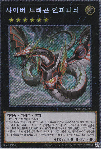 [RC03-KR025 A] Extra Secret Rare "Cyber Dragon Infinity" ALT ART Korean Product Description: [RC03-KR025 A] Extra Secret Rare "Cyber Dragon Infinity" ALT ART Korean Single Card + Sleeve + Top loader (Case) Mint Condition (Made in Korea) 100% Genuine Product of Konami (Korean Version) All singles cards are never used, fresh from the pack. (also available for combined shipping) Store Policy Items will be shipped from South Korea, 1 ~ 3 business days after order. All the items, we are selling, include manufacturers' warranty and do strict inspection & packaging before shipping. We use Korea Post / Rincos International Priority Airmail. All of our shipping provide tracking number. (Standard & Expedited) Standard: 10 ~ 20 business days (+ Tracking Number) Expedited: 5 ~ 10 business days (+ Tracking Number) We do accept all reasonable request and offer.