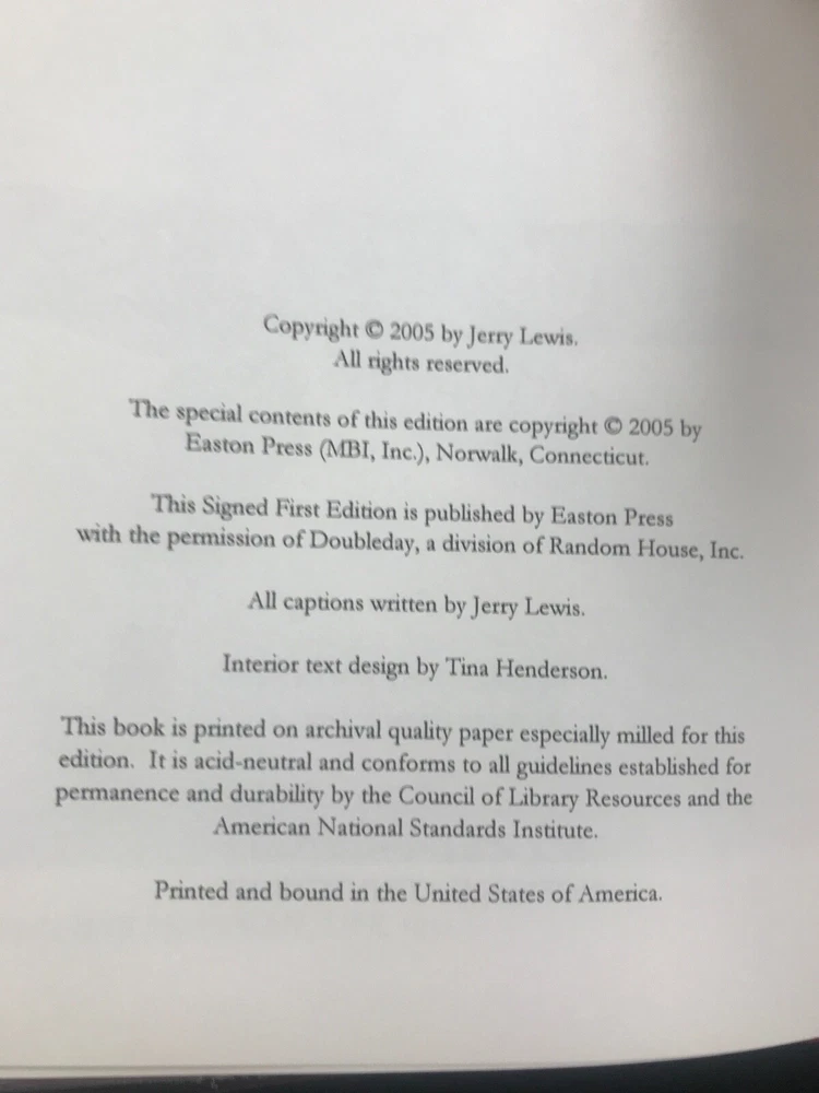 Jerry Lewis himself originally ordered 100 of these limited edition red leather bound books for friends and family which were accompanied by an autographed certificate. They were in such demand that the he had to order another 100 to satisfy friends, and these books are part of the remaining second order... BUT they were NEVER autographed even though the book spine reads Signed First Edition. "DEAN & ME A LOVE STORY" by JERRY LEWIS & JAMES KAPLAN, shows us that opposites indeed do attract!! We have here a handsome crooner and a skinny monkey that teamed up and from the moment they got together something clicked and audiences saw it at once. Before long, they were as big as the Beatles, creating hysteria wherever they went! Read on to see where their career took them. It's such an exciting and easy read.