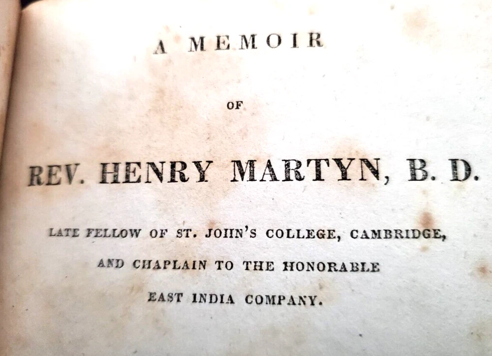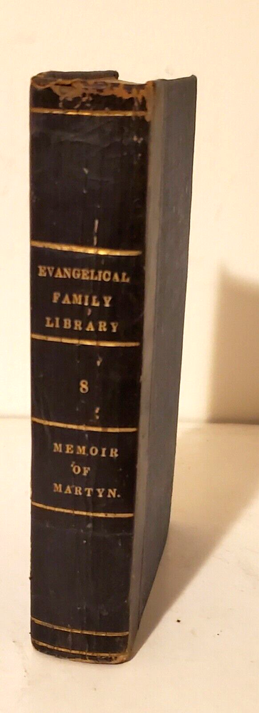 EVANGELICAL FAMILY LIBRARY MEMOIR OF HENRY MARTYN EVANGELICAL FAMILY LIBRARY - MEMOIR OF HENRY MARTYN, by John Sargent .... .. Published by American Tract Society, New York, no publication date is given, but the book appears to be from way back in the 1800s …… This is Volume 8 from the larger set … .... DESCRIPTION - Hardback, bound with a leather spine..... A small book, it measures about 6 inches high, and 4 inches across front ...........… CONDITION - The little fella is in good used condition...... The pages are good, with the edges darkened, and with spots, mostly on the early and late pages...And the pages have what I would call a fairly light old book scent......The cover is solid, with general wear and use.......This is a purty good little ol' book.......…..I think you will be pleased with it. . ..... SHIPPIN' AND PAYMENT - 'Course the thrilled winner is gonna hafta pay $4.75 for postage and handlin'.......Multiple purchases save on shippin' ... ... Now while you're here, why don't you give my other auctions a look-see...Why, I 'spect I got a wagon load of mighty good books over yonder in my Book Barn.... Thanks a heap....!!! - - - ol' arkee