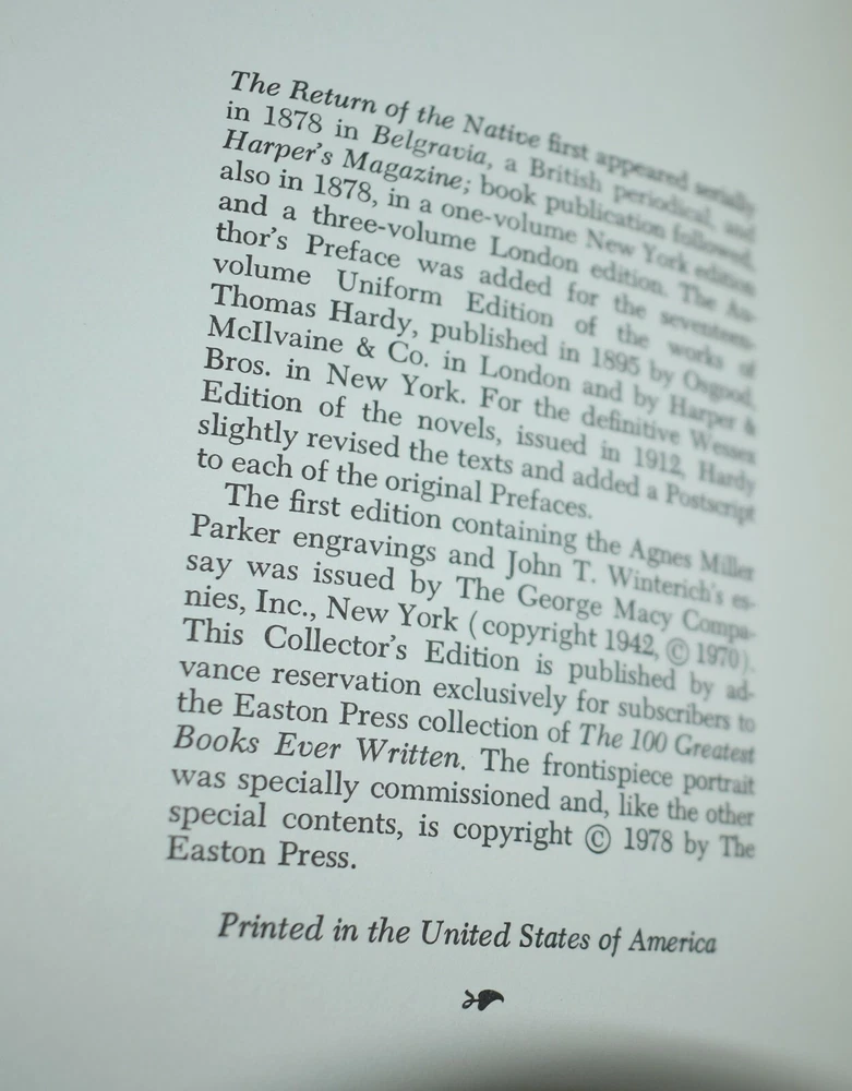 RETURN OF THE NATIVE by Thomas Hardy 1978 Easton Press Leather In great condition, bought then placed on my bookshelf for decades. Please see my many photos. Check out my many other listings, many mor...