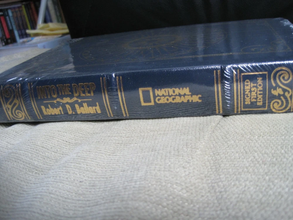 This is a leather bound signed and numbered first edition of Robert D. Ballard's best-selling memoir - "Into The Deep", the fascinating life story of famous scientist and explorer, discoverer of the Titanic shipwreck in 1995 and Yorktown in 1998. The book is in great condition, brand new and still sealed in the original plastic wrap. Signed by the author on the limitation page, the book also includes the signed and dated certificate of authenticity and the publisher's note card sealed inside the book. This is one of only 400 numbered copies ever printed by Easton Press. Easton Press books are the golden standard in the publishing industry, highly collectible and lasting generations. Easton Press Full Genuine Leather Dubbed Spine Accented Wit 22 kt. Real Gold Satin Ribbon Page Marker Distinctive Cover Design Gilded Page Edges To Protect Against Humidity High Quality Acid - Free paper Smyth-Sewn Pages Silk-Moire Endleaves I combine multiple items for savings on shipping charges. I ship worldwide. Please ask about international shipping charges and/or different shipping options. Please check out my other auctions for several rare signed books for sale. Thank you!