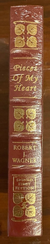 ROBERT J WAGNER - PIECES OF MY HEART - EASTON PRESS SEALED FIRST EDITION This is a leather bound signed numbered first edition of Robert Wagner’s best seller, ‘Pieces of My Heart ”. The book is new, unopened, sealed in Easton Press' original shrink wrap. Signed by the author on the limitation page, it also includes the signed and dated certificate of authenticity, and the publisher's note card. This is a signed copy with all the extras sealed inside. Easton Press books are the golden standard in the publishing industry, highly collectible and lasting generations. Easton Press Full Genuine Leather Dubbed Spine Accented Wit 22 kt. Real Gold Satin Ribbon Page Marker Distinctive Cover Design Gilded Page Edges To Protect Against Humidity High Quality Acid - Free paper Smyth-Sewn Pages Silk-Moire Endleaves
