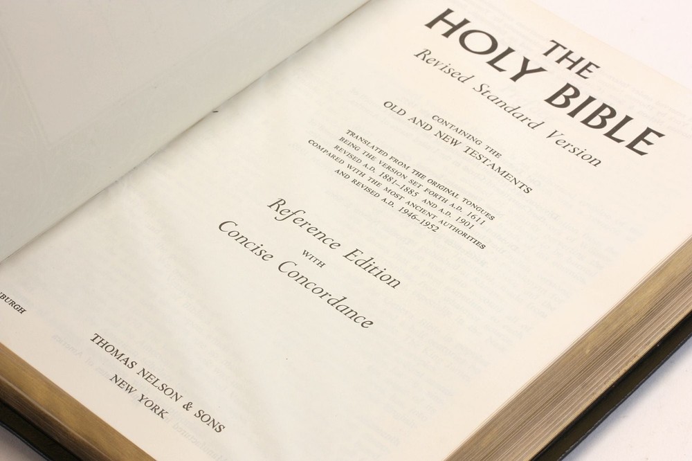 HOLY BIBLE: Revised Standard Version [Black Genuine Leather Reference] Author: RSV Title: HOLY BIBLE: Revised Standard Version [Black Genuine Leather Reference] Publication: Thomas Nelson, 1959 Edition: First Edition Description: Leather. First Reference Edition. xiii, 1016, 1296, 191, maps. 8vo, 8.75 x 6' Smyth-sewn binding in a nicely grained Black Genuine Leather with semi-yapp edges, gilt stamped spine lettering; all edges gilt, red place ribbon. Dual column reference edition with concordance and maps. A slim text with a very thin but still quite opaque paper. A pristine copy, entirely clean and sharp with crisp, bright edges showing no evidence of reading. From the preface (an excellent introduction to textual criticism and the history of the Bible in English): 'The RSV seeks to preserve all that is best in the English Bible as it has been known and used through the years. It is intended for use in public and private worship, not merely for reading and instruction. We have resisted the temptation to use phrases that are merely current usage, and have sought to put the message of the Bible in simple, enduring words that are worthy to stand in the greate Tyndale-King James tradition.'. FINE. Seller ID: 505225 Subject: Religion Arches Bookhouse is a brick & mortar bookshop in North Portland, Oregon. We carry good books of all kinds with an emphasis on scholarly humanities books. We are open for browsing Monday-Saturday, 10–5:00. Terms All orders ship within two business days, packaged professionally with care. We offer combined shipping on multiple orders. All items are guaranteed to be as described or they may be returned within 30 days of receipt for a full refund. This listing was created by Bibliopolis.