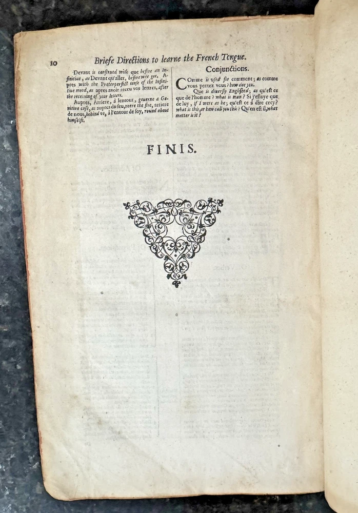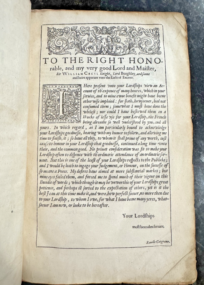 London: Adam Islip, 1611. First Printing. Hardcover. Quarto, 11 x 8 inches, w ith elaborate woodcut title page, text bright and clean, occasional light stains. Front board detached with first four pages, rear board detached as well. One flypage present front and back.