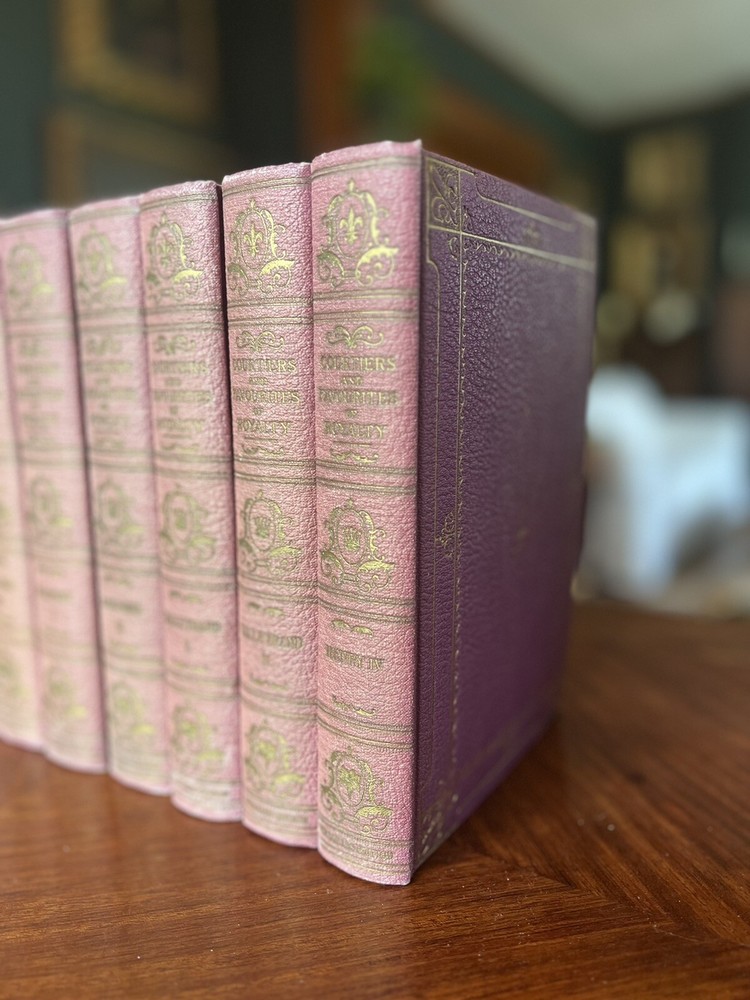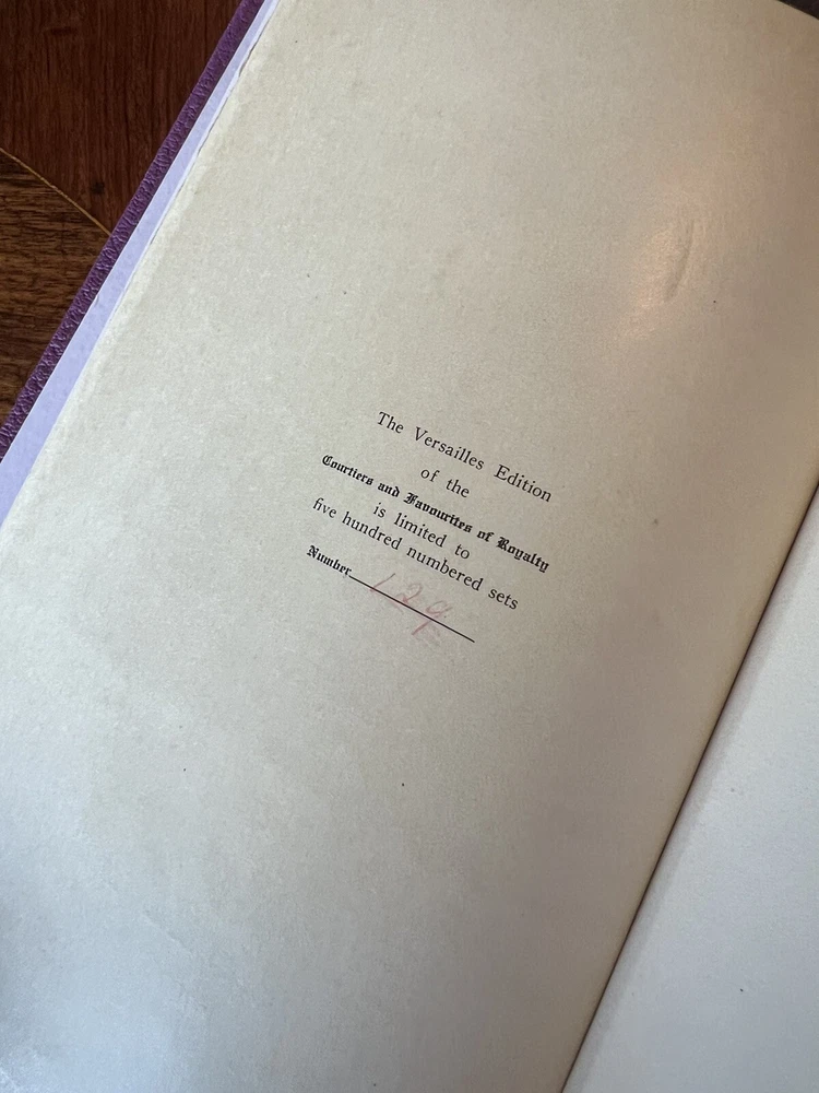 Stunning 10 volume set, bound in a shade of royal purple with gilt embossing. Versailles Edition The collection consists of the following: De Fitz Madam Du Berri I, II, III, IV Josephine I, II Talleyrand I, II Henry IV 10 volumes in total Fantastic decorative and informative value. No publishing date listed. Limited Edition: 129/500 Please see all photos as they are an integral part of the description.