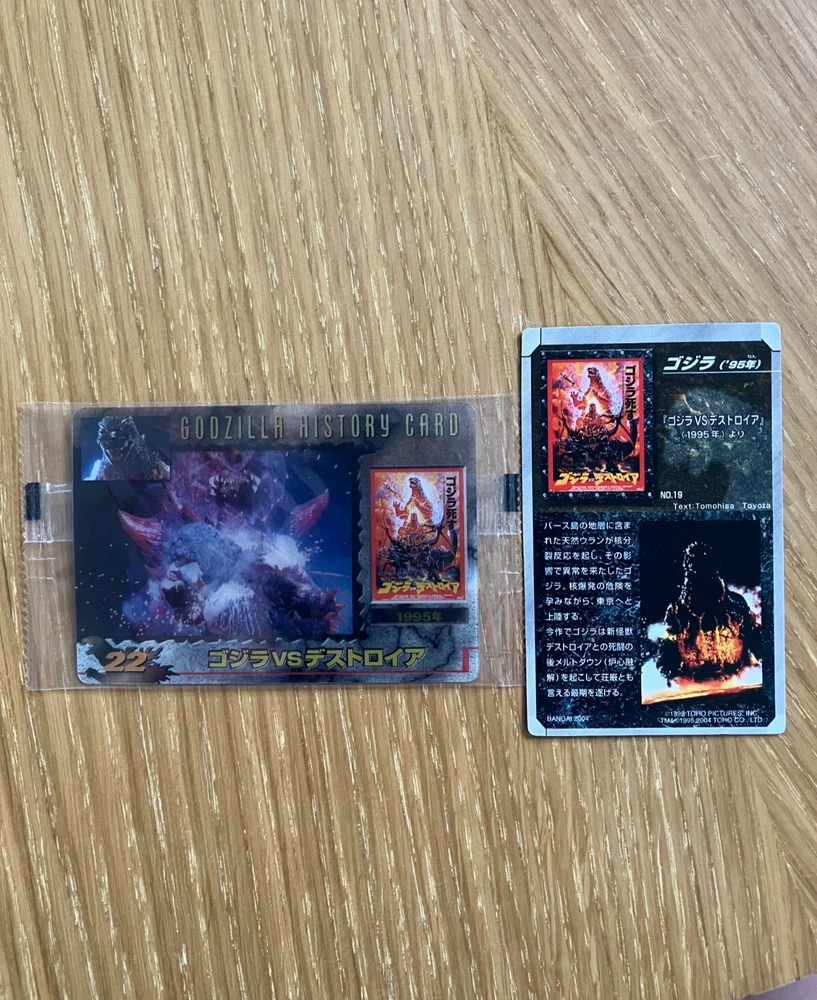 Just got my hands on this amazing 1995 Godzilla vs. Destoroyah card set—such a cool find for any collector! The unopened plastic card and opened paper one are in great shape for their age, with only minor wear. Perfect for fans of vintage TOHO memorabilia. Fast shipping and well-packaged—highly recommend grabbing it before it's gone!