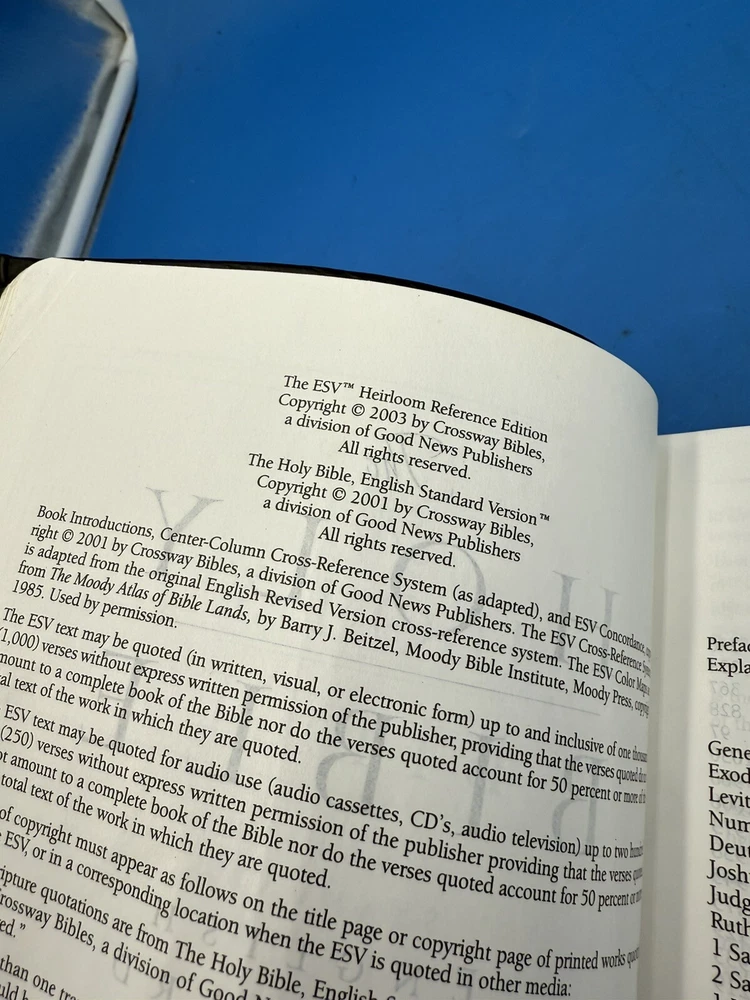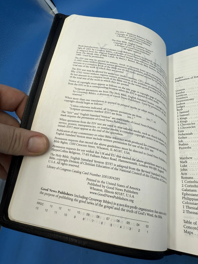 This rare 2003 edition of the Holy Bible is a true gem for collectors and enthusiasts alike. The calfskin leather binding adds a touch of luxury to this already valuable item. This first edition Hardcover book measures 9.2 inches in length and 6.5 inches in width, making it a perfect size for reading and display. The Bible features the English Standard Version (ESV) and Référence topics, making it a valuable resource for anyone looking to deepen their understanding of the Christian faith. Published by Crossway in 2003, this Bible is a nonfiction narrative type and is written in English. It is a must-have for any collector or enthusiast of the Bible.