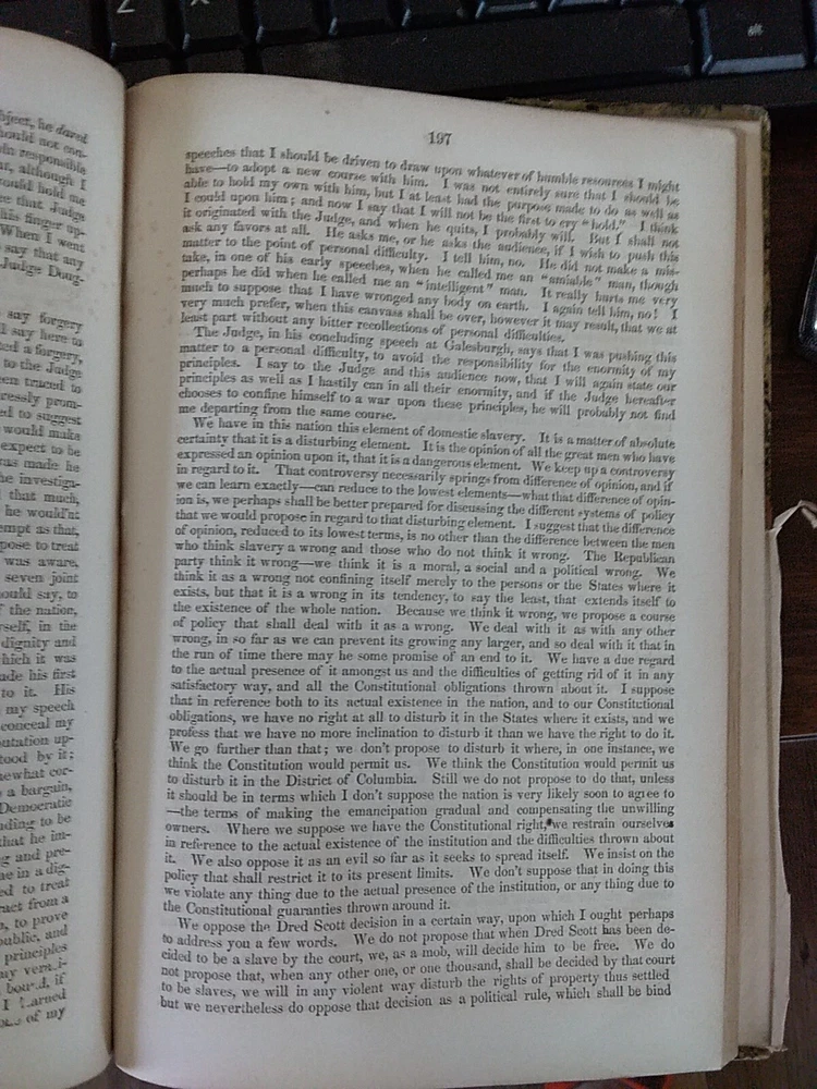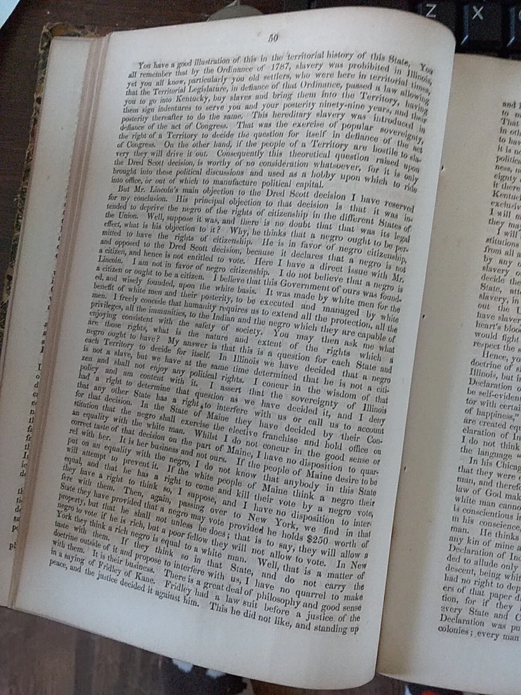 This rare antique book contains the Lincoln & Douglas Political Debates from 1885, with a 1st Edition published in 1860. The leather binding and original language make it a valuable addition to any collection, especially for those interested in political biography and autobiography. This book is a must-have for any serious collector or enthusiast, with its unique insights into the lives of two of America's most iconic figures. NOTE NOTE I am not a collector of books my knowledge of antiques books is limited to what I see printed on the pages... Please ask questions and I will try to answer as best I can..... looked on the internet and could not fine another simular book
