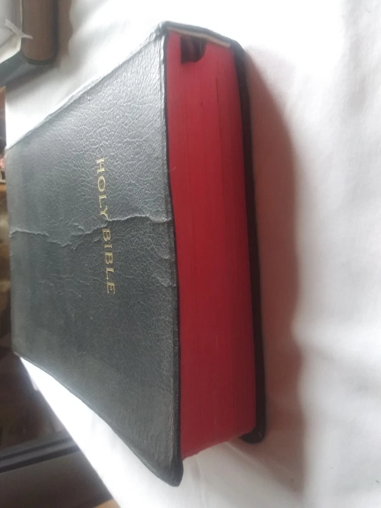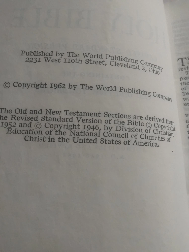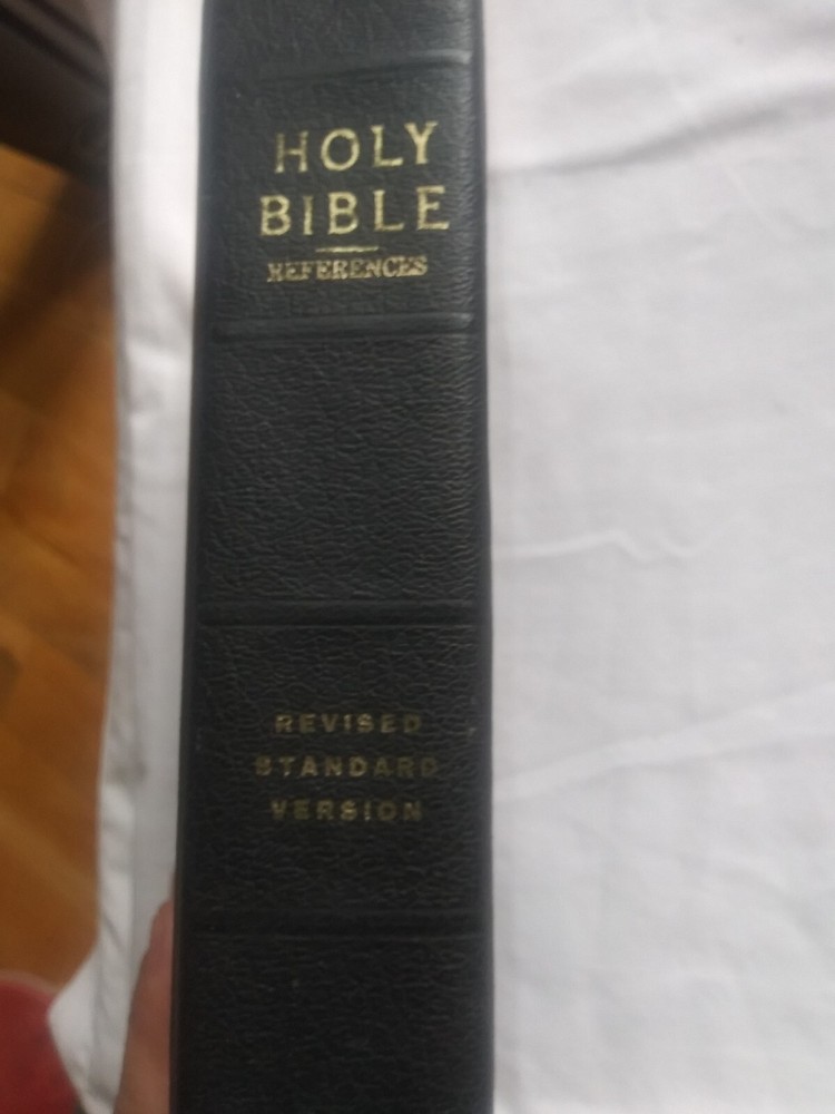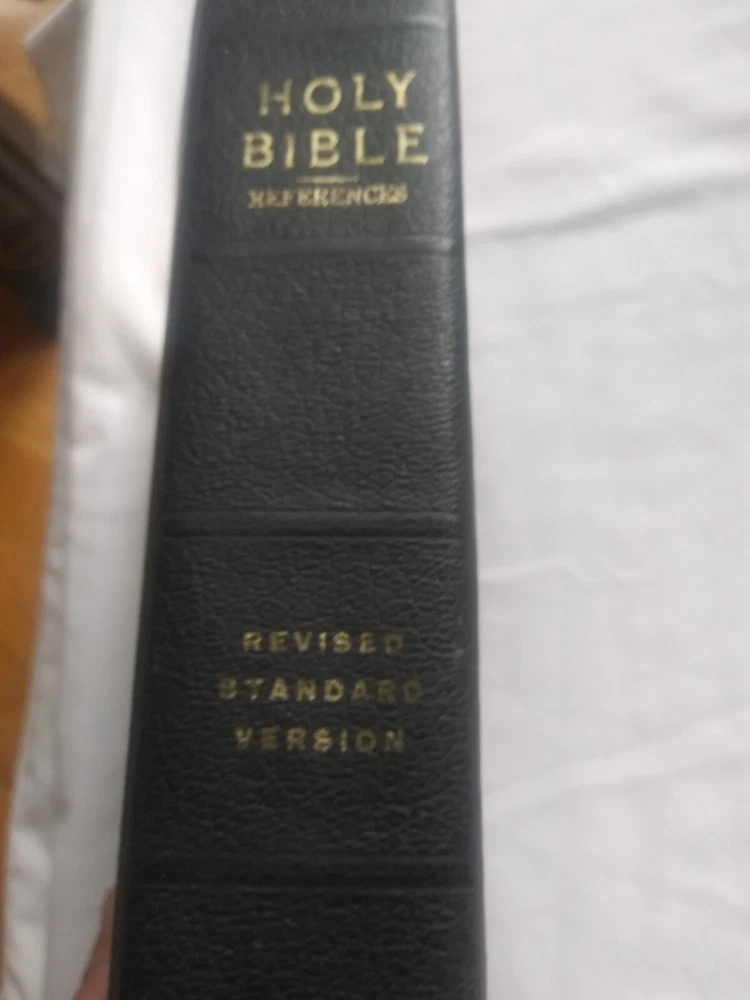 Rare Holy Bible♱ Revised Standard Version♱ World Publishing Co. 1962♱.The middle in front & back of leather bind has lines were been opened see pictures for this inside has no writing. It has yellowing on white pages see this in pictures. See pictures for description ask any questions if needed
