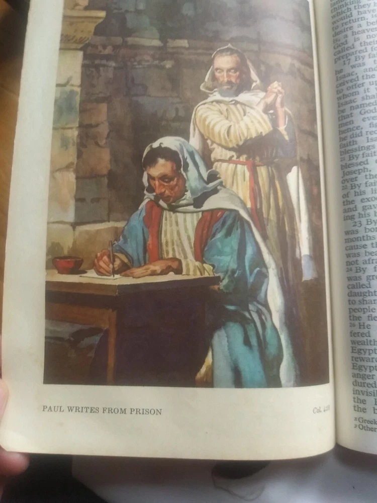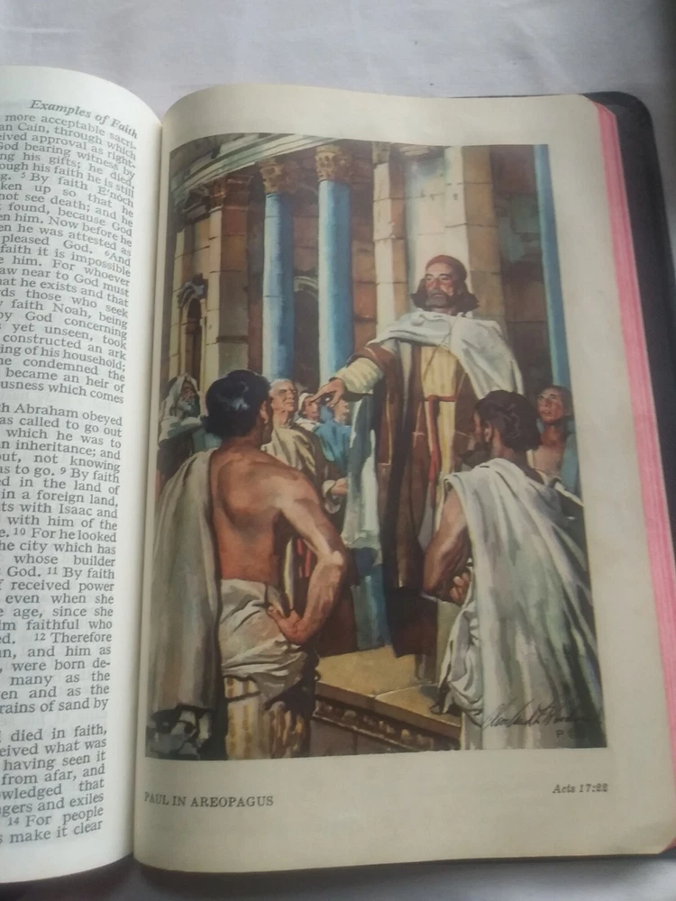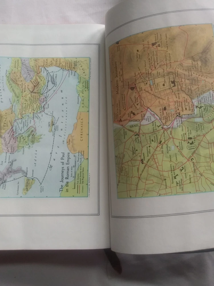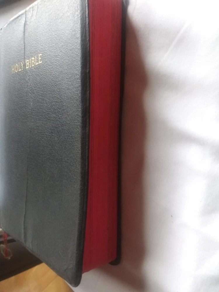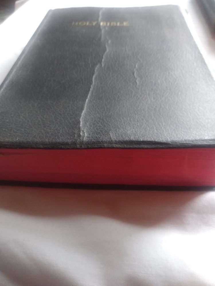 Rare Holy Bible♱ Revised Standard Version♱ World Publishing Co. 1962♱.The middle in front & back of leather bind has lines were been opened see pictures for this inside has no writing. It has yellowing on white pages see this in pictures. See pictures for description ask any questions if needed