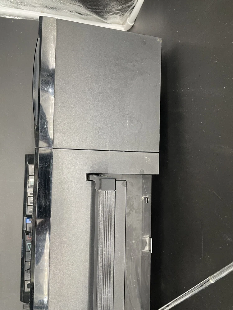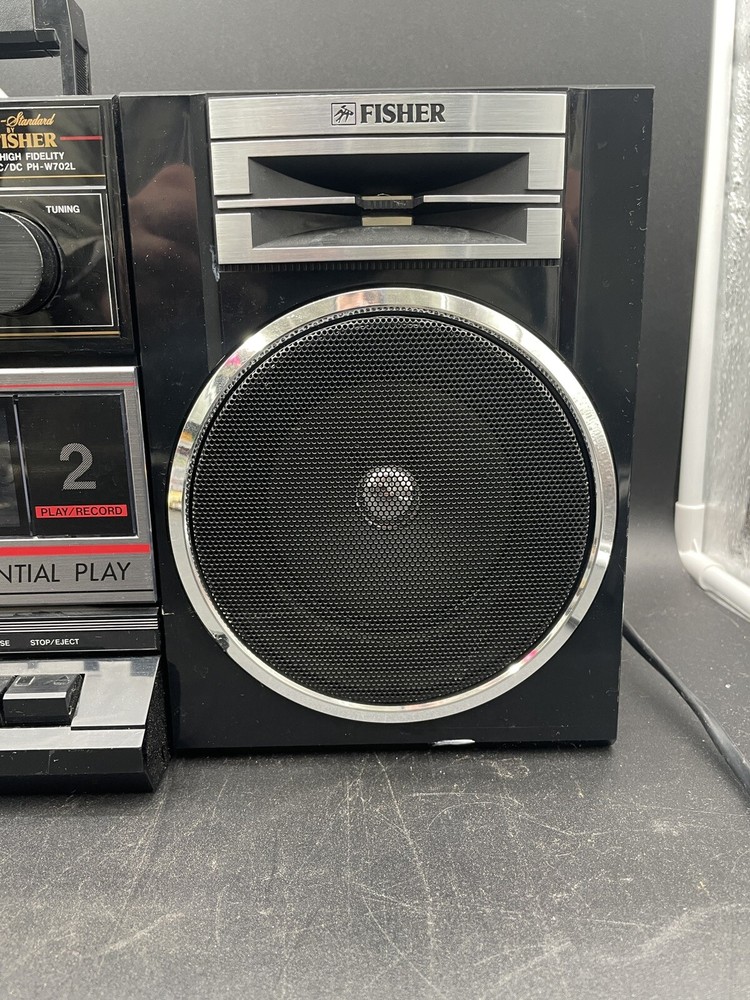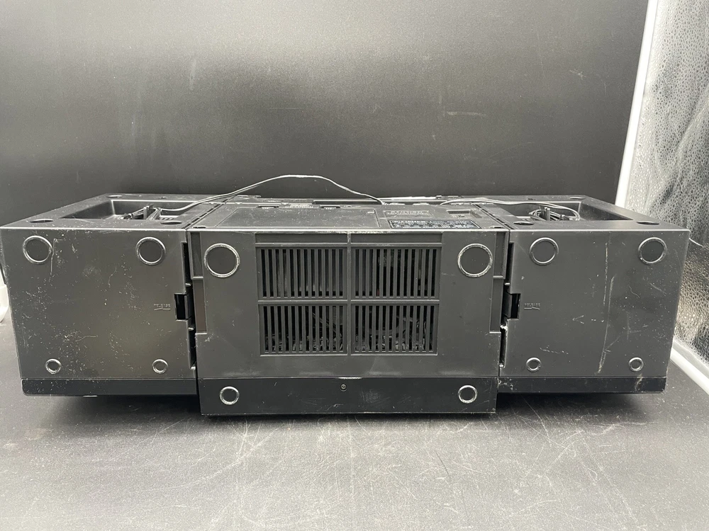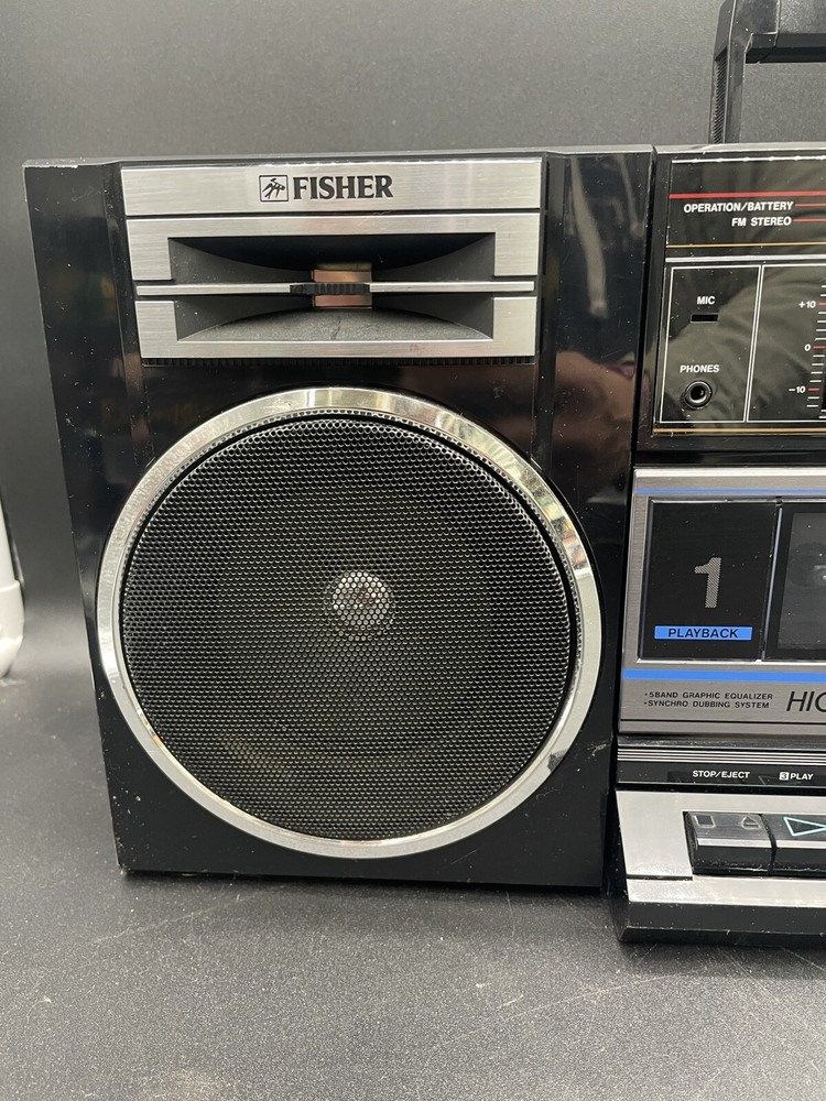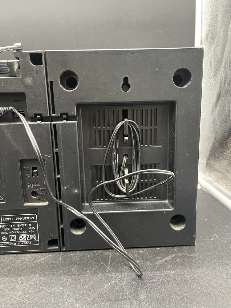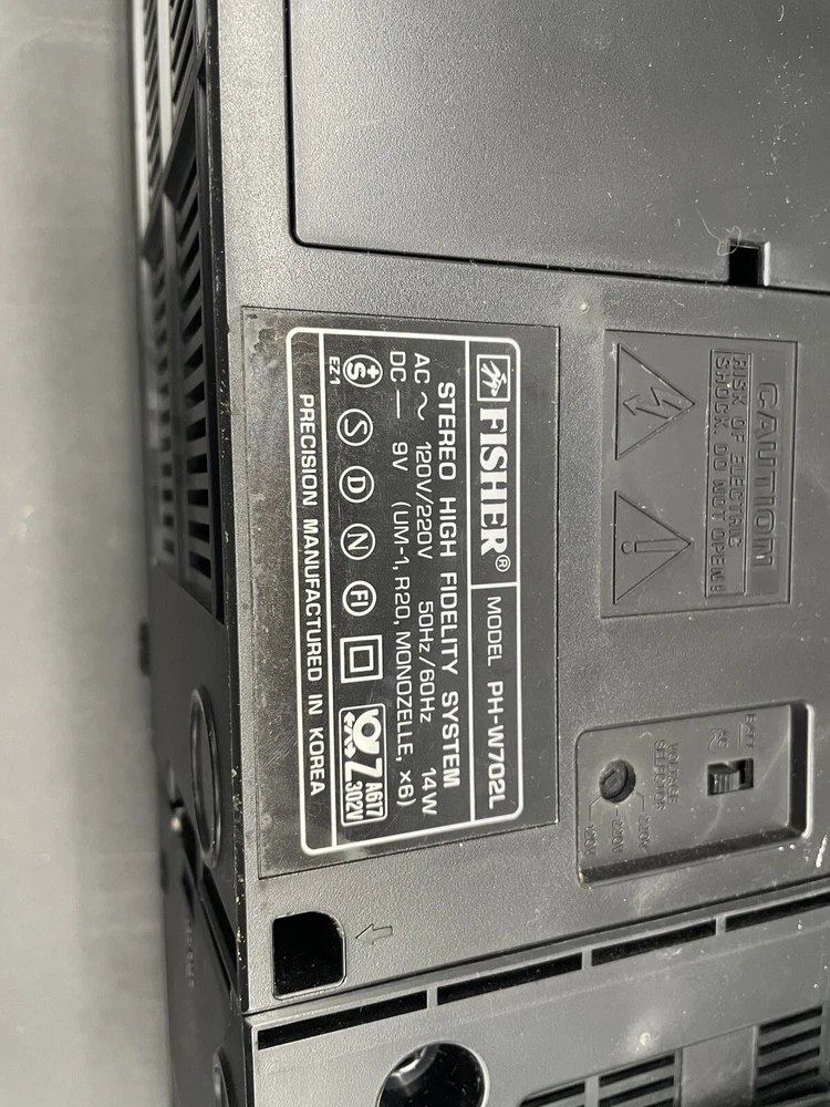 Radio works as it should but tape drives do not spin. I would guess that the drive belts need to be replaced but am not technically adept enough to try. Sound is good on FM radio. Speakers don’t crackle, all slides and switches run smoothly. No crackles on volume slides. Antenna has a kink at the base that keeps it from sliding all the way in. Battery compartment clean clean. Type C plug with adapter. Please see photos for details.