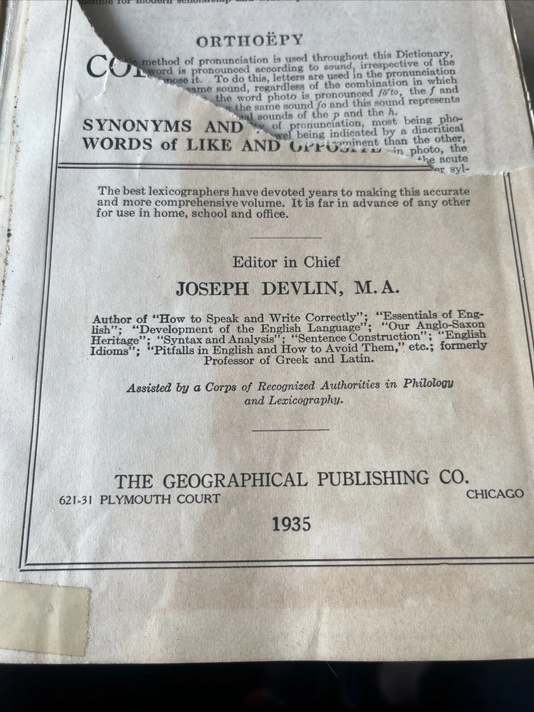 This rare book is a must-have for collectors and enthusiasts of antique maps and atlases. The Webster's Geographical Dictionary Revised 1935 Ed. Leather is a beautifully crafted book with English language and leather binding. It was printed by The Geographical Publishing Co. in Chicago in 1935 and contains valuable information on reference topics. The book is perfect for those interested in collecting dictionaries and thesauri, and its rarity makes it a unique addition to any collection. The book has wear and tear as shown in pictures